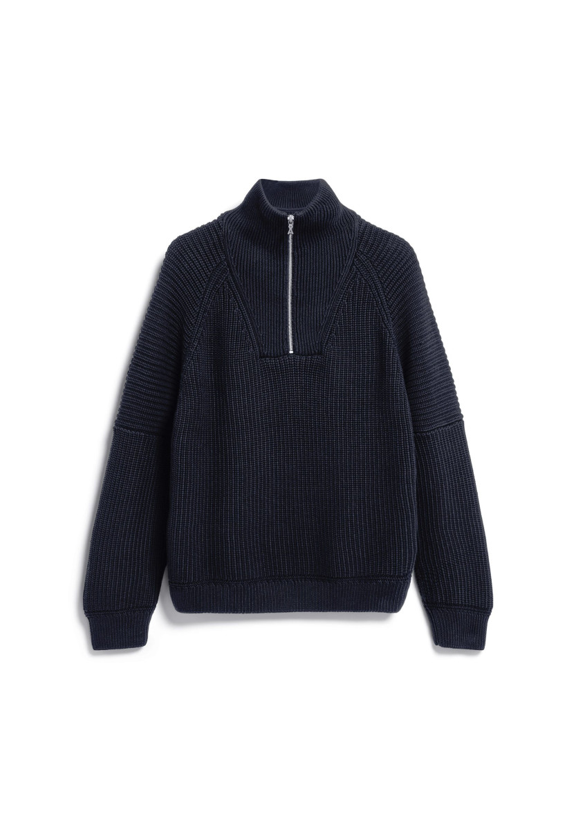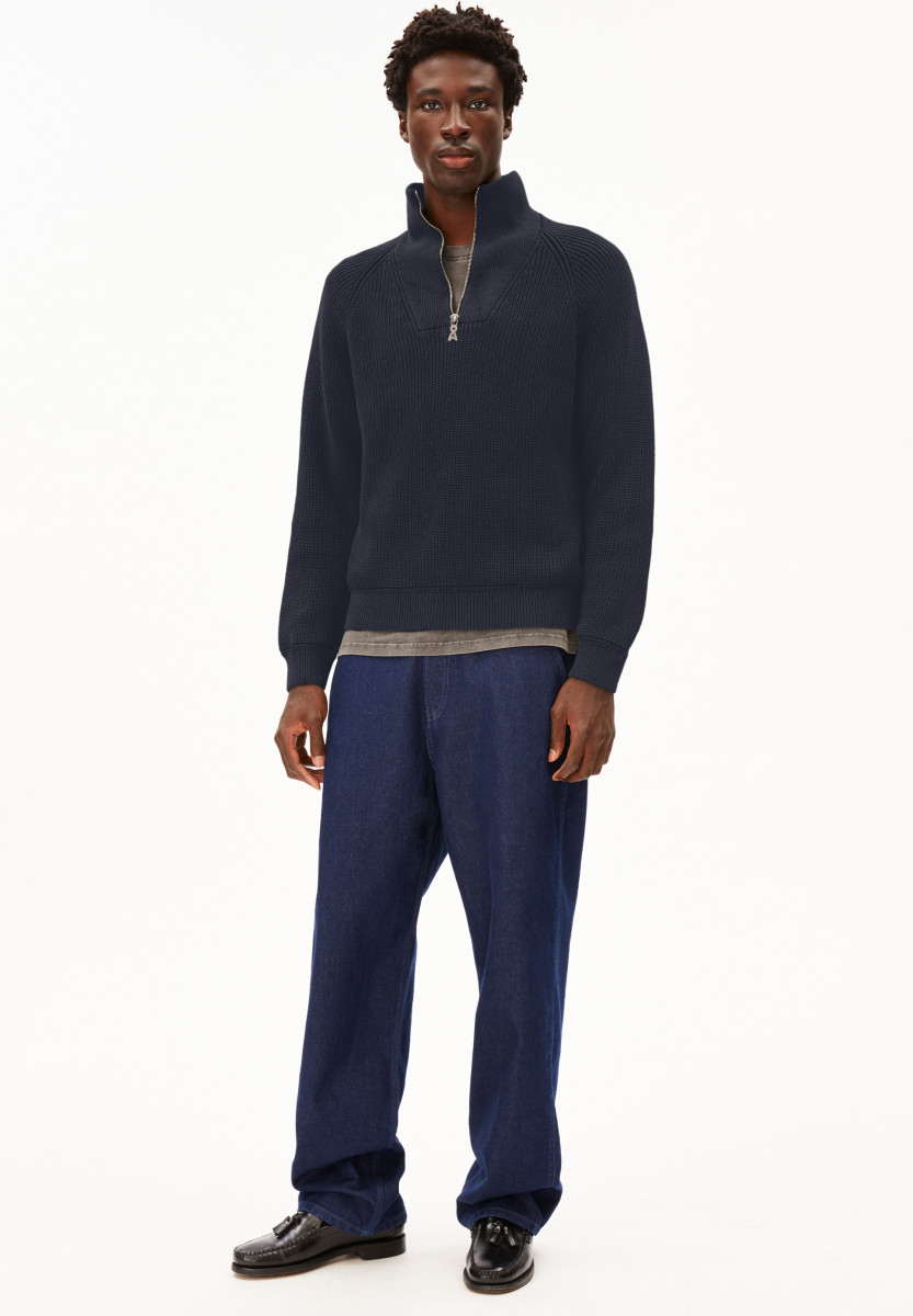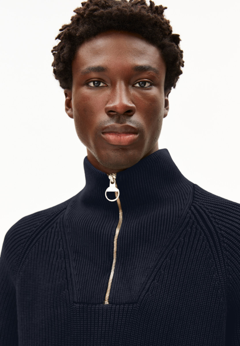 Der KAALVES GMT DYE Strickpullover aus 100% Bio-Baumwolle hat einen geraden Schnitt und einen hohen Kragen mit Reißverschluss. Das Troyer-Design macht ihn zu einem vielseitigen Klassiker und sorgt für bequemen Tragekomfort.