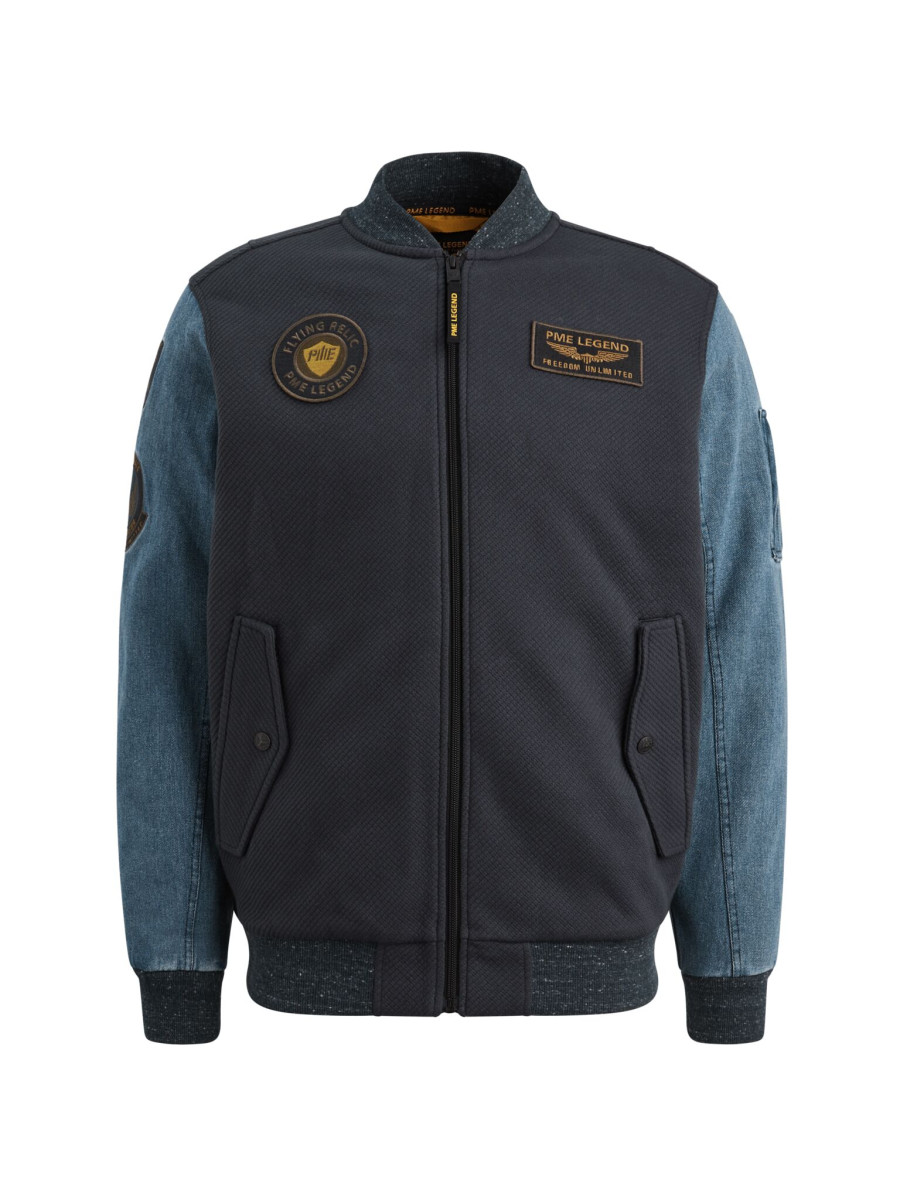Dank der hybriden Konstruktion eignet sich die Jacke ideal als Übergangslösung: Sie schützt vor leichtem Wind und bietet gleichzeitig die Flexibilität und Bequemlichkeit eines Sweatshirts. In klassischem Dunkelblau gehalten, lässt sie sich vielseitig zu Jeans oder Chinos kombinieren und ist damit ein verlässlicher Begleiter für einen sportlich-maskulinen Freizeit-Look.