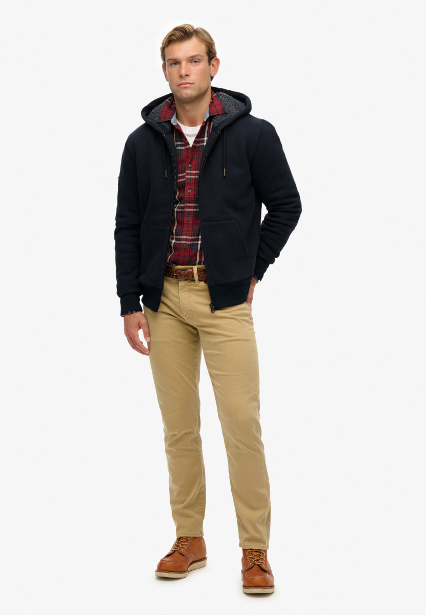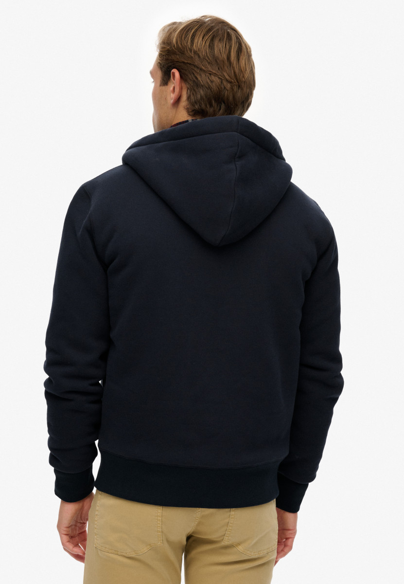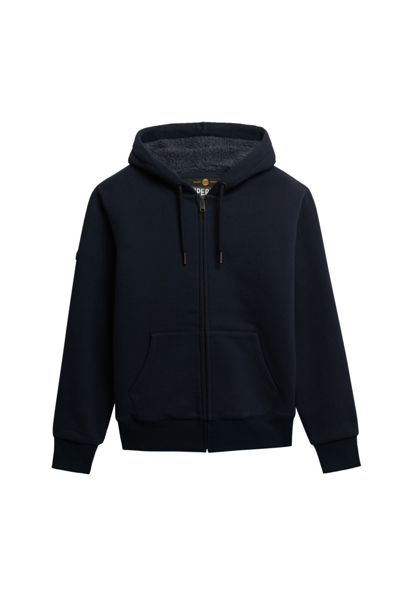 Schmale Passform – eng anliegend für einen schlanken Look | Kapuze mit Kordelzug | Reißverschluss | Eine Innentasche und zwei Außentaschen | Gerippte Bündchen und Saum | Borg-gefütterter Körper und Kapuze | Gesticktes Abzeichen am rechten Ärmel | Unsere neueste Innovation eines klassischen Designs: Unser Borg-gefütterter Zip-Hoodie wird im Handumdrehen zum Grundpfeiler deiner Outfit-Zusammenstellung. Mit praktischer Innentasche und gerippten Abschlüssen hält er deine Wertsachen sicher und die Wärme zuverlässig drinnen. Dieser hochwertige Casual-Style eignet sich perfekt zum Layering mit deinem Lieblings-T-Shirt und Jeans – so bleiben deine gemütlichen Vibes nicht nur auf einen faulen Tag zu Hause beschränkt. Trotze der Kälte mit Selbstbewusstsein und deinem neuen Begleiter für diese Saison.