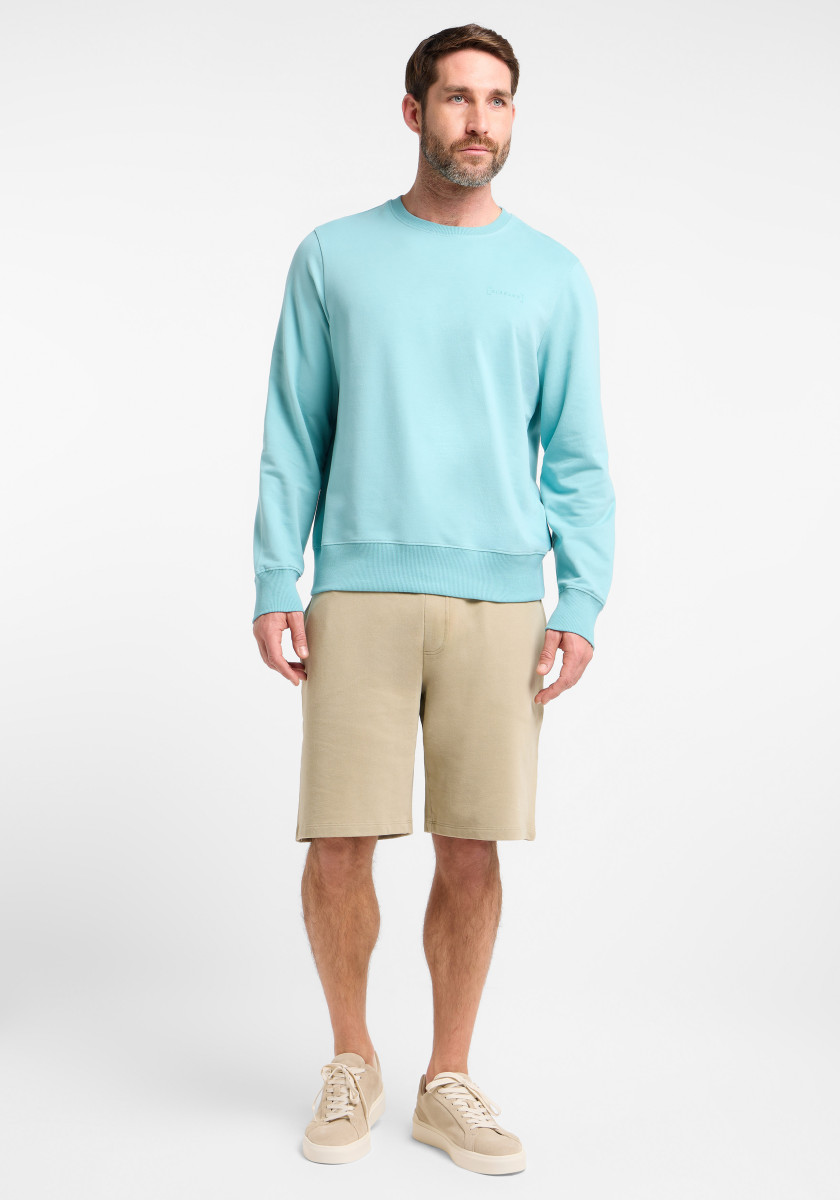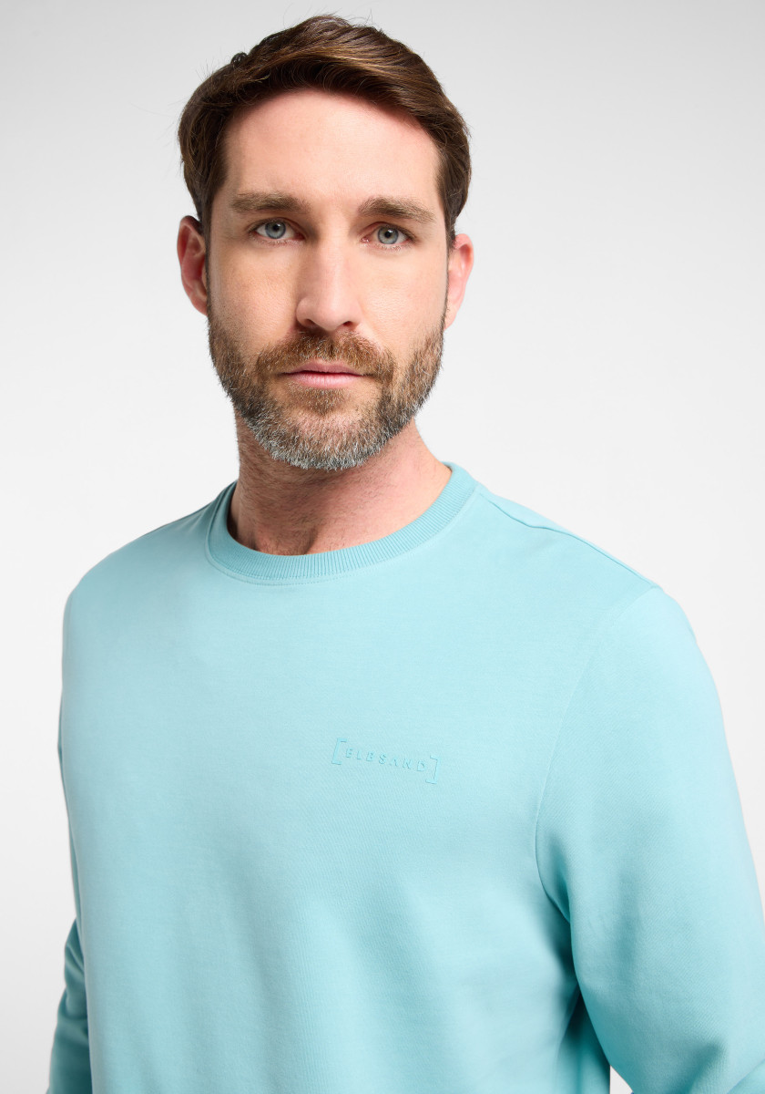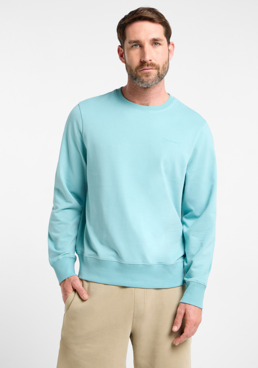 Rundhalsausschnitt | Langarm | Kleiner Schriftzug, linke Brust, Ton in Ton | Regular Fit | Rippbündchen