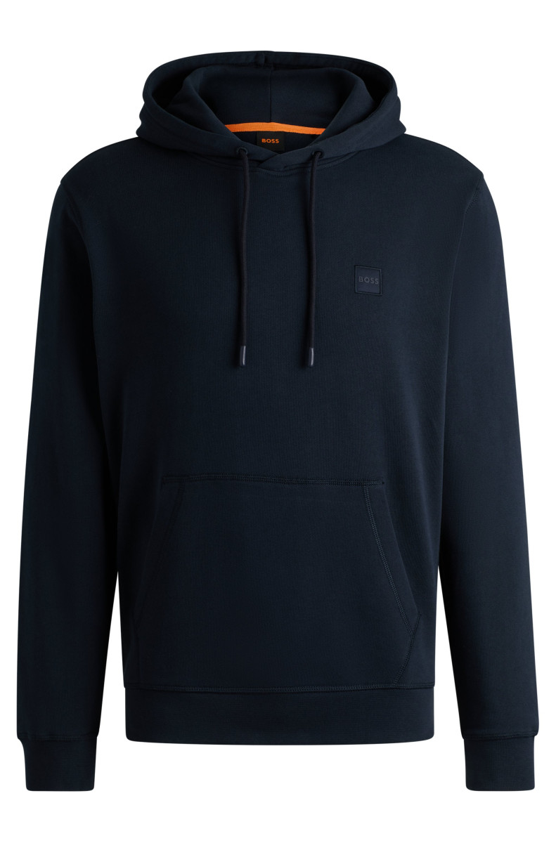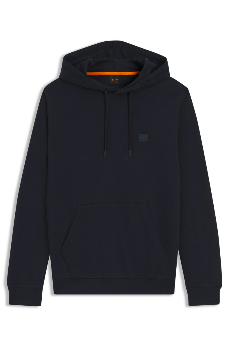 Bequemer BOSS Kapuzenpullover mit tonalem, gewebtem Logo-Aufnäher auf der Brust. Gerade geschnittener Style aus besonders softem Baumwoll-French-Terry.