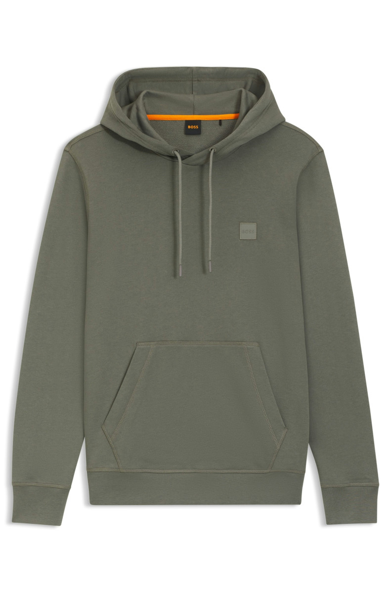Bequemer BOSS Kapuzenpullover mit tonalem, gewebtem Logo-Aufnäher auf der Brust. Gerade geschnittener Style aus besonders softem Baumwoll-French-Terry.
