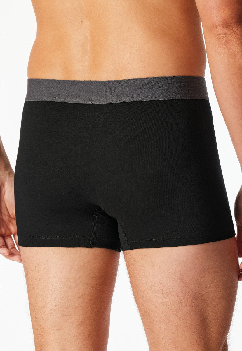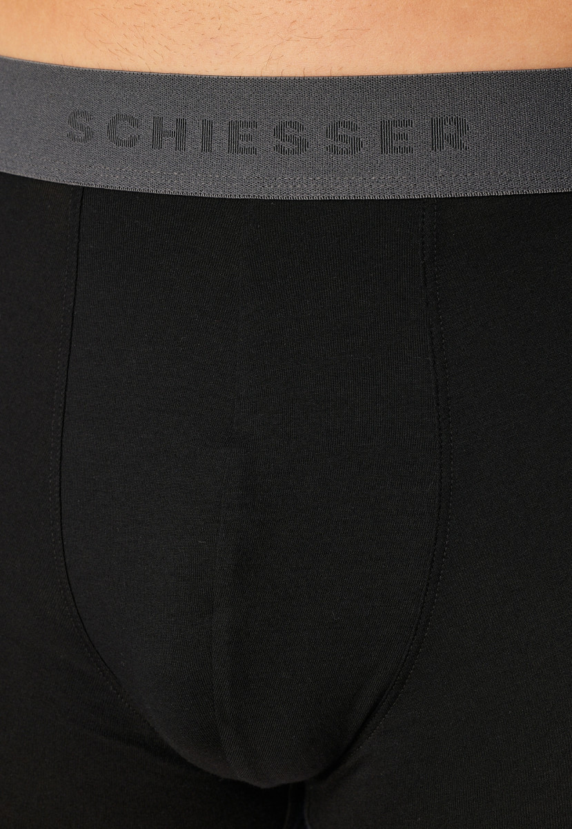 Schwarze Herren-Shorts im 3er-Pack mit Webgummibund in Schwarz, Nachtblau und Grau | Aus der beliebten SCHIESSER Serie "95/5" | Farblich abgesetzter, sportlicher Logo-Webgummibund | Angenehm weich und formstabil dank 95 % natürlichem Organic Cotton und 5 % Elasthan | In perfekt sitzender, elastischer Single-Jersey-Qualität