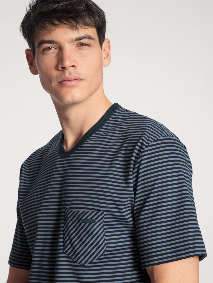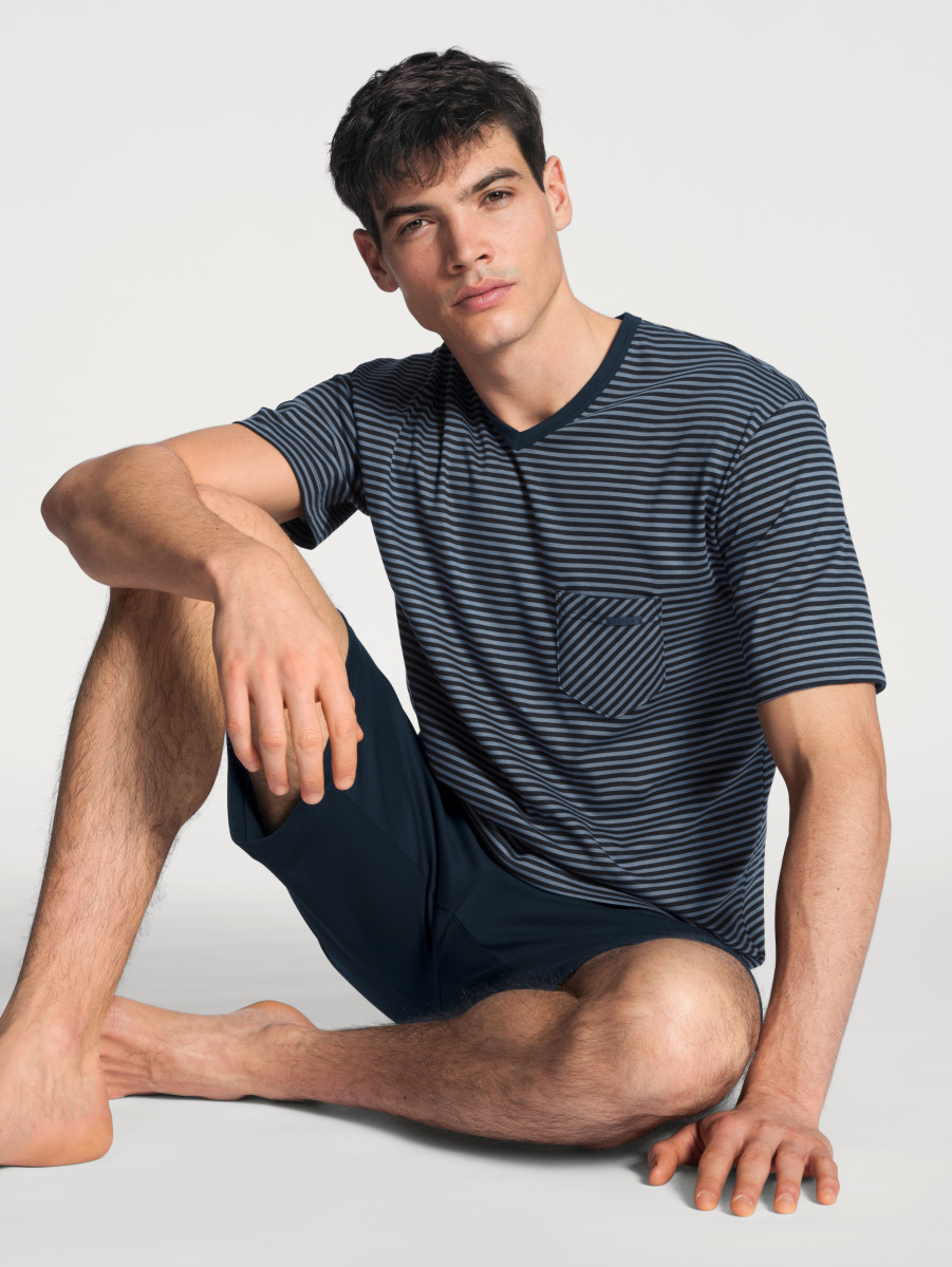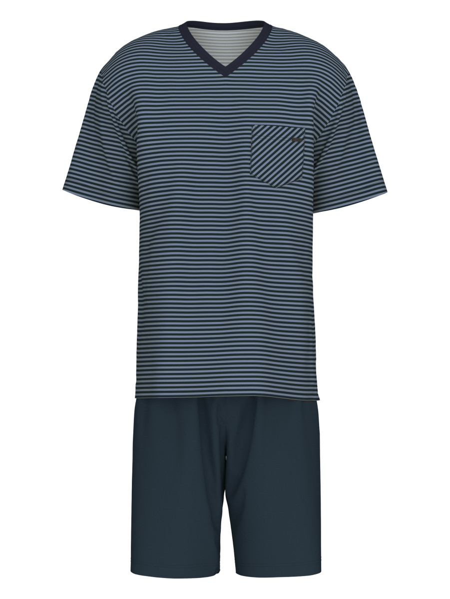 Short pyjamas, comfort fit|in 100% cotton|in interlock weave|short-sleeve shirt with v-neck|patch-style breast pocket|patterned shorts with fabric-covered elastic waistbandLief.-Art-Nr: 41167