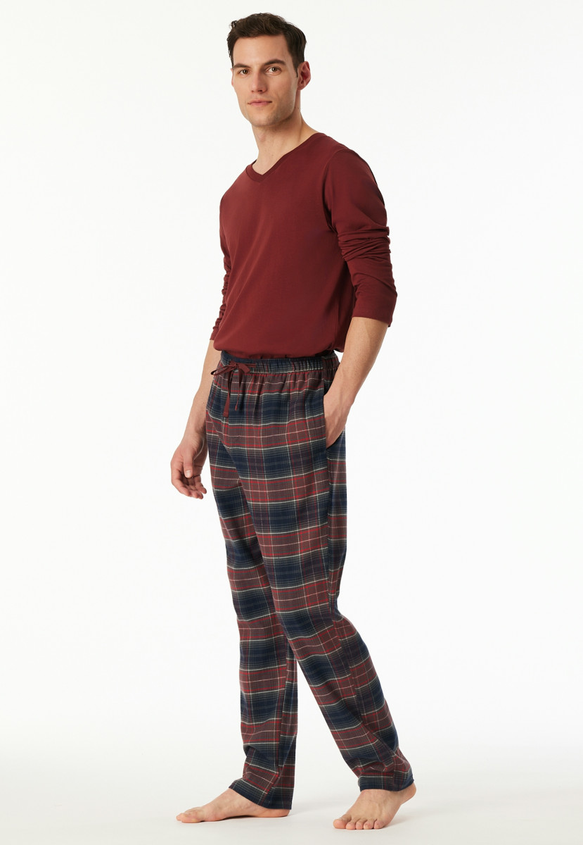 Karierte Herren-Loungehose in Dunkelgrün, Rot und Dunkelblau | Aus der beliebten SCHIESSER Serie "Mix+Relax" | Bund mit Bindekordel | Seitliche Taschen | In angenehm weicher Flanell-Qualität aus Bio-Baumwolle