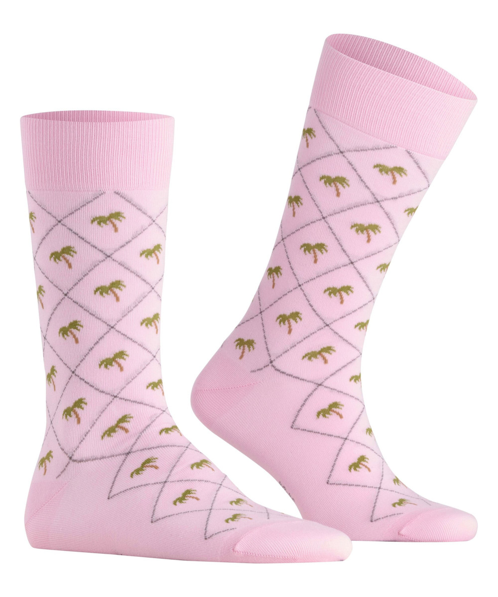 Klassisches Argyle-Design trifft auf ein lässiges Palmen-Muster und verbindet zeitlose Eleganz mit entspanntem Urlaubsflair. Die weiche Baumwollmischung sorgt für besten Tragekomfort, während das ikonische Burlington-Logo den Look vollendet. Perfekt, um stilvolle Outfits charmant abzurunden.Lief.-Art-Nr: 24767