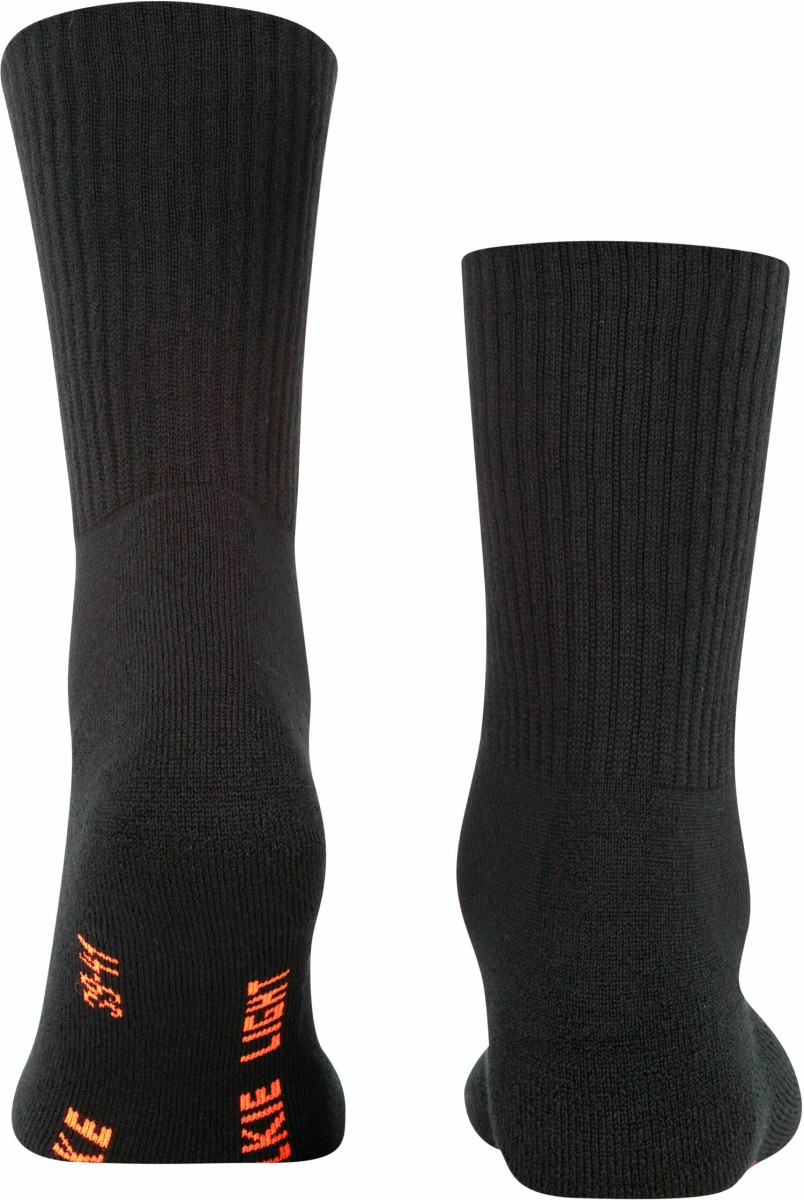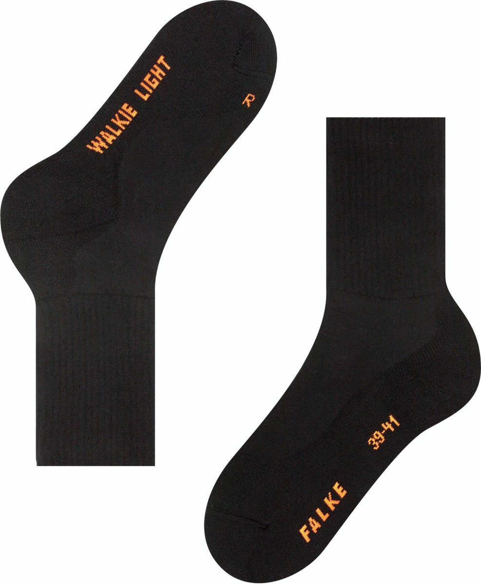 Falke Socken Walkie Light leichter Trekking- und Wanderstrumpf hochwertige Materialkomposition für sportliche Anlässe geeignet weiche Merinowolle mit Beimischung trocknet Haut vermindert unangenehme Blasenbildung am Fuß glatt gestrickt der Schaft und das Umschlagbündchen sind gerippt feiner Elastanfaden garantiert eine perfekte Passform Plüschpolster von der Ferse über die Zehen angenehmes Tragegefühl mit eingestrickter Größe in der Sohle