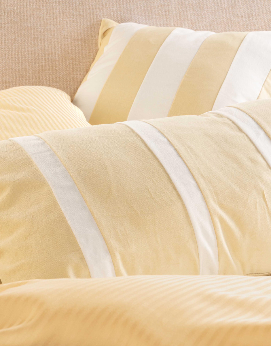 Die Essenza Bettwäsche Coletta in der Farbe Yellow Straw strahlt Ruhe und Raffinesse aus. Das Dessin Coletta zeigt feine Streifen, die durch einen Wechsel in der Webtechnik entstehen. Die unterschiedlich strukturierten Bahnen fangen das Licht auf spielerische und elegante Weise ein.