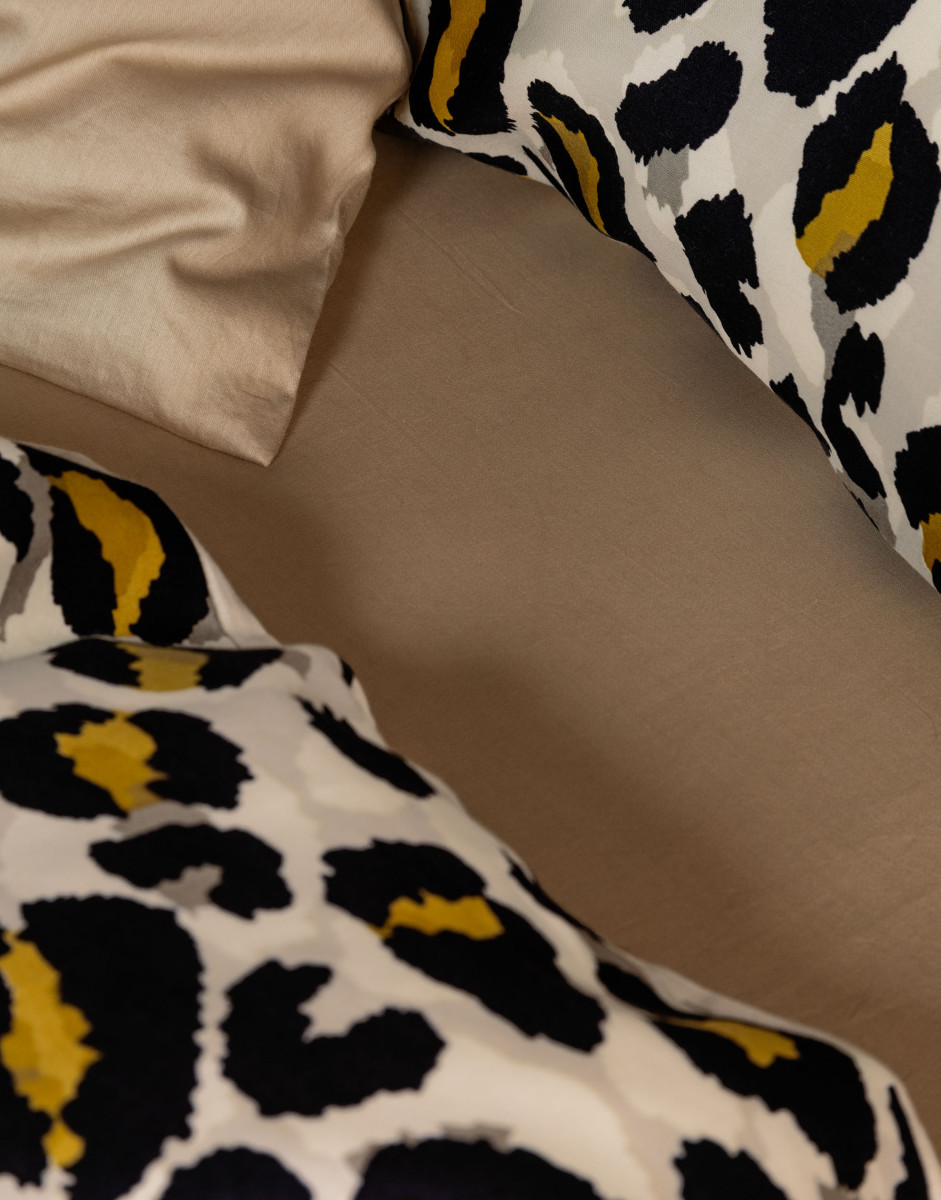 Der Fedelia Bettbezug erweckt einen ikonischen Leopardenprint in einer modernen, künstlerischen Interpretation zum Leben. Handgemalt und inspiriert von der anmutigen Kraft des Panthers, strahlt dieses Design Selbstvertrauen aus. Die charakteristischen Markierungen des Panthera pardus – sind dezent in einer natürlichen Palette aus warmen Braun-, sanften Grün- und zarten Grautönen wiedergegeben. Ein kraftvoller Klassiker in gelassener Ausführung, die Ruhe mit Charakter verbindet. Gefertigt aus 100 % Baumwollsatin ist dieser Bettbezug glatt, weich und wunderbar sanft auf der Haut. Fedelia ist eine Ode an die Natur und die eigene Stärke – ein Design, das sich genauso angenehm anfühlt, wie es aussieht.