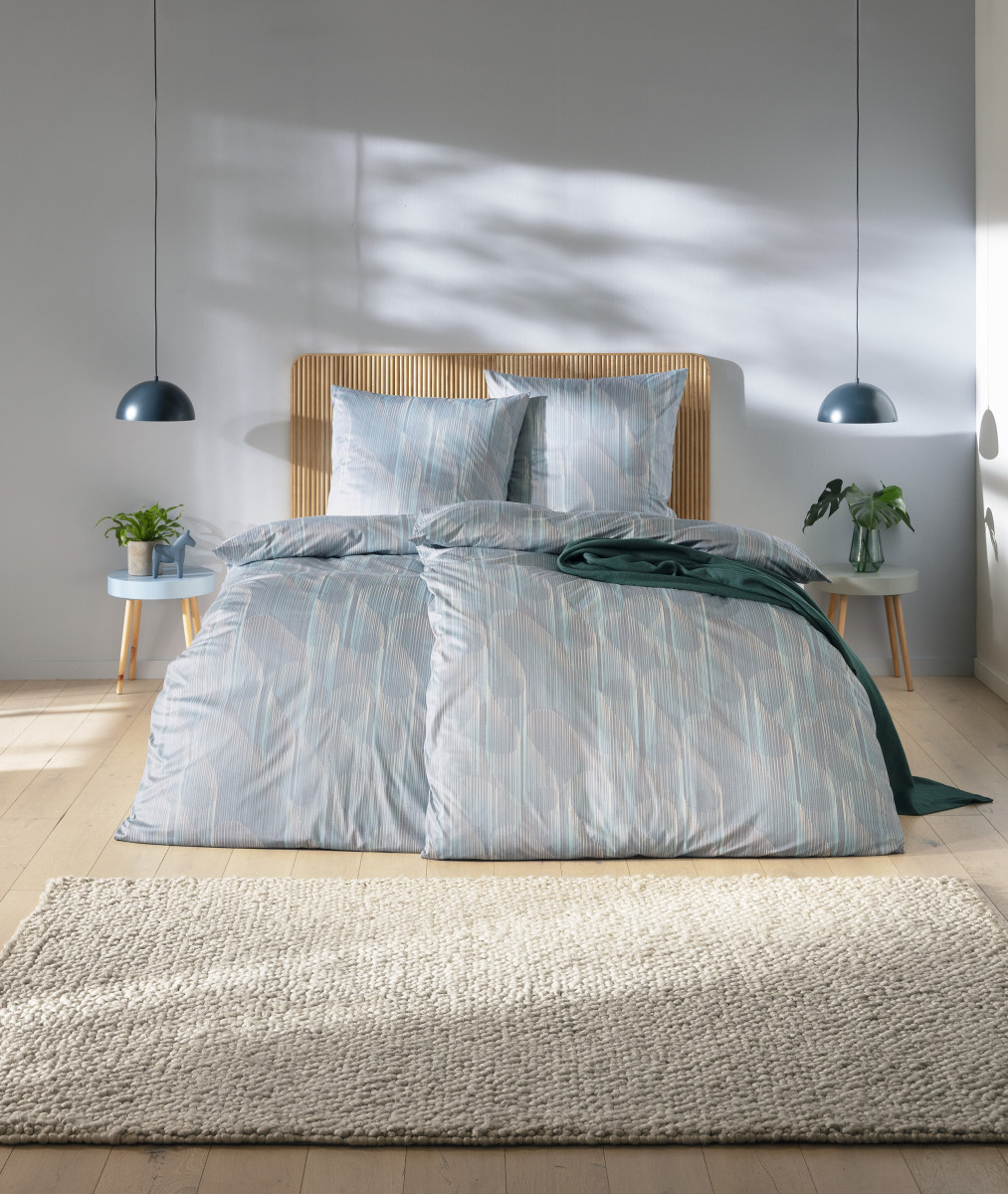 Die Bettwäsche Leon Graphit von Estella ist aus Mako-Interlock-Jersey gefertigt und besteht aus 100 % Baumwolle. Sie ist absolut bügelfrei, formstabil und hautfreundlich, mit einem ruhigen, eleganten Graphit-Ton, der sich harmonisch in viele Schlafräume einfügt.