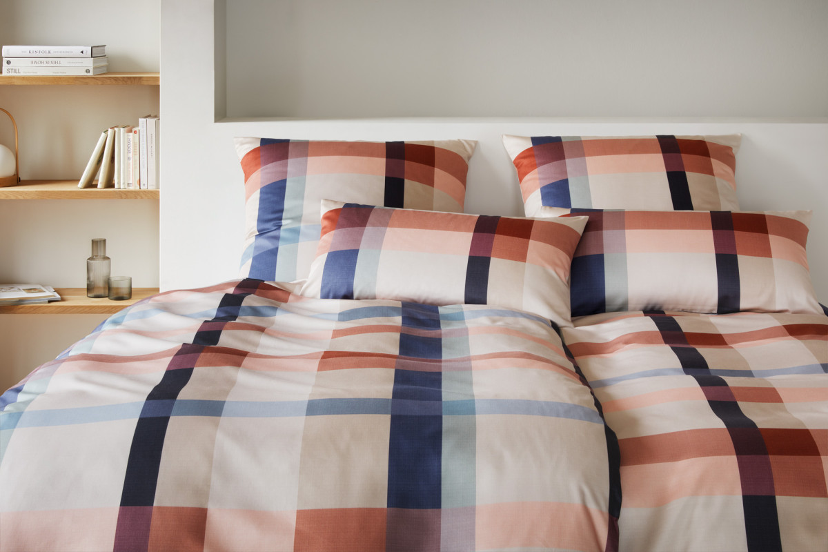 Das Grafik Design CARRÉE JERSEY lebt von der Vielzahl an Farben in den Karoschattierungen. Die Interlock Jersey Qualität aus 100% Baumwolle ist pflegeleicht, bügelfrei und verleiht dem Dessin eine fantastische Haptik. Diese Bettwäsche schließt mit einem Reißverschluss.
