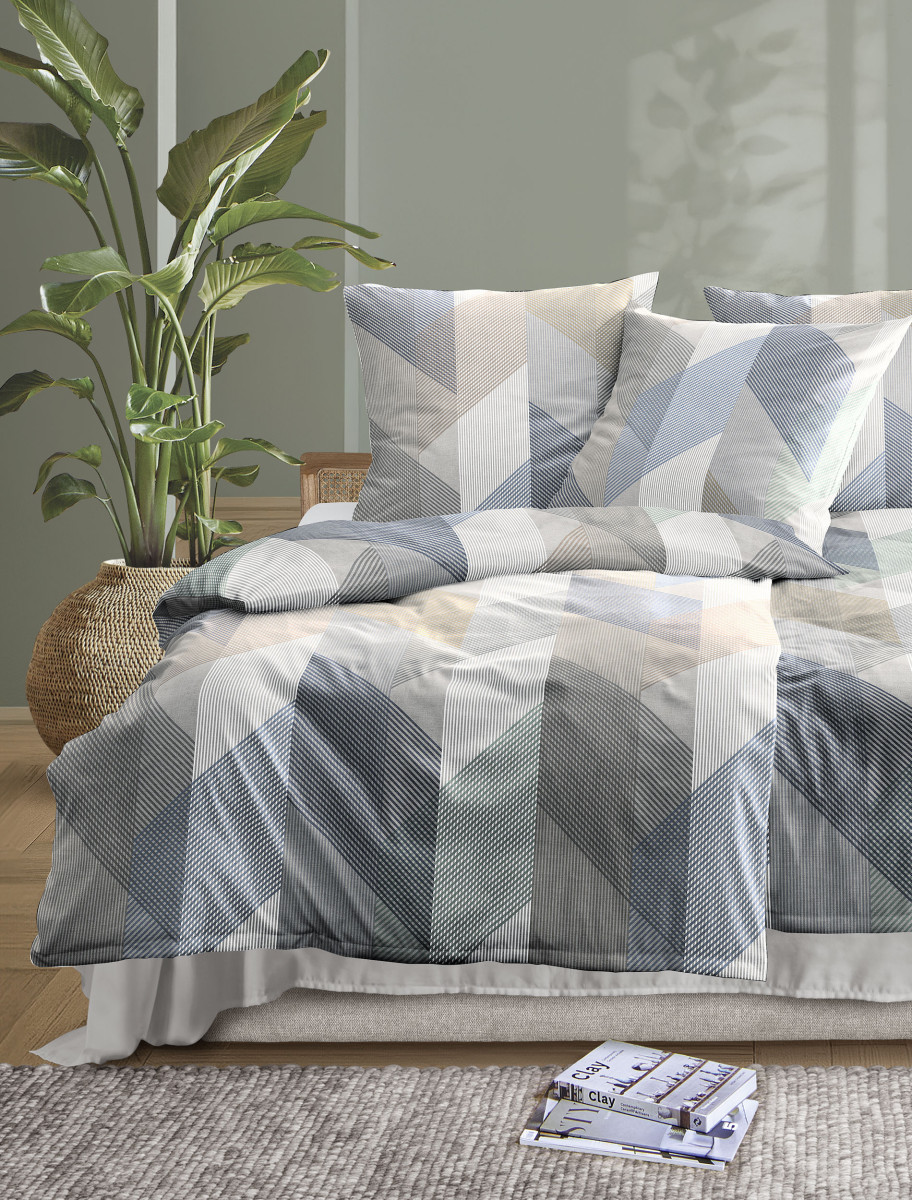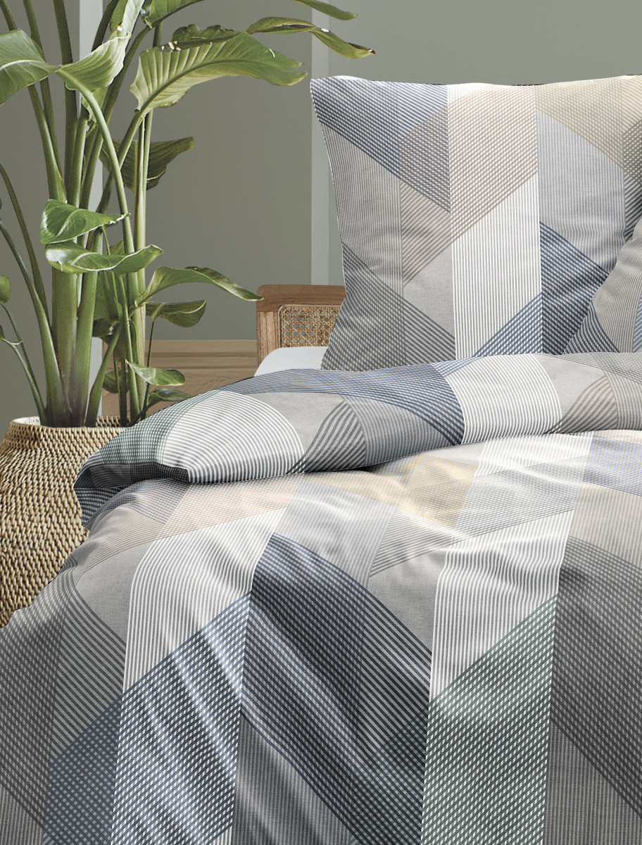 Machen Sie es sich gemütlich mit der Mako-Satin Bettwäsche Wave 8739 natur. Diagonale Blöcke und Blockstreifen machen das Design der Irisette Wäsche zur Augenweide. Die modern gehaltenen Bettwaren aus dem Hause Irisette eignen sich deal für ein modernes, zeitloses Schlafzimmer Ambiente.