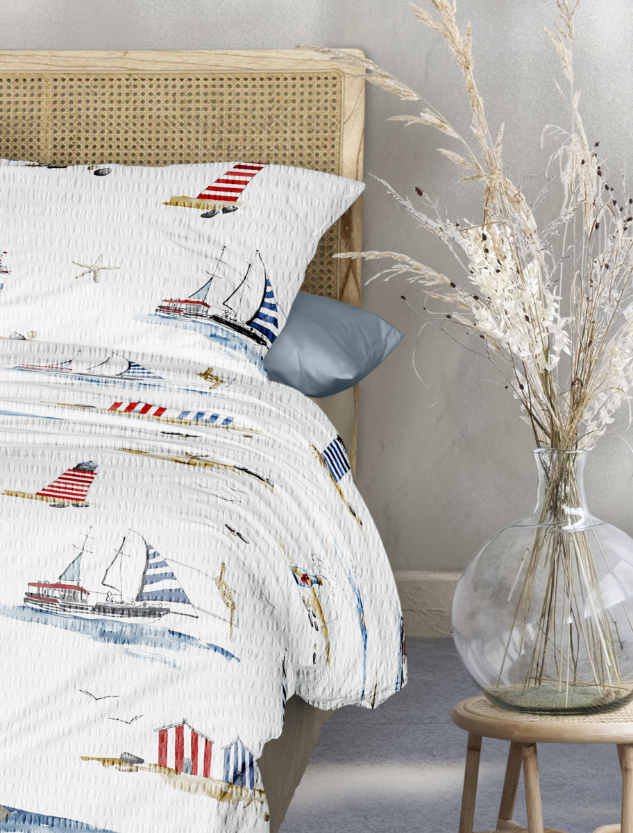 Leichte Seersucker-Bettwäsche-Set „Easy“ in erfrischender Sommerqualität. Luftig-kreppige Struktur liegt locker auf, sorgt für gute Zirkulation und ein angenehmes Hautgefühl.