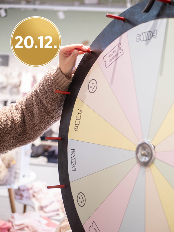 In unserer Kinderwelt wartet ein Glücksrad mit süßen Weihnachts-Überraschungen.