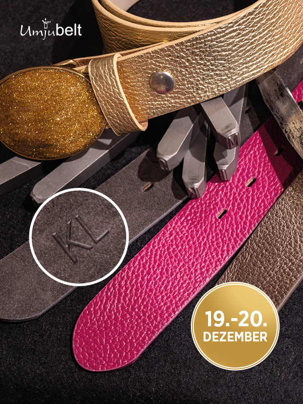 Beim Kauf eines Umjubelt-Gürtels erhalten Sie Ihre ganz persönliche Wunsch-Prägung gratis.