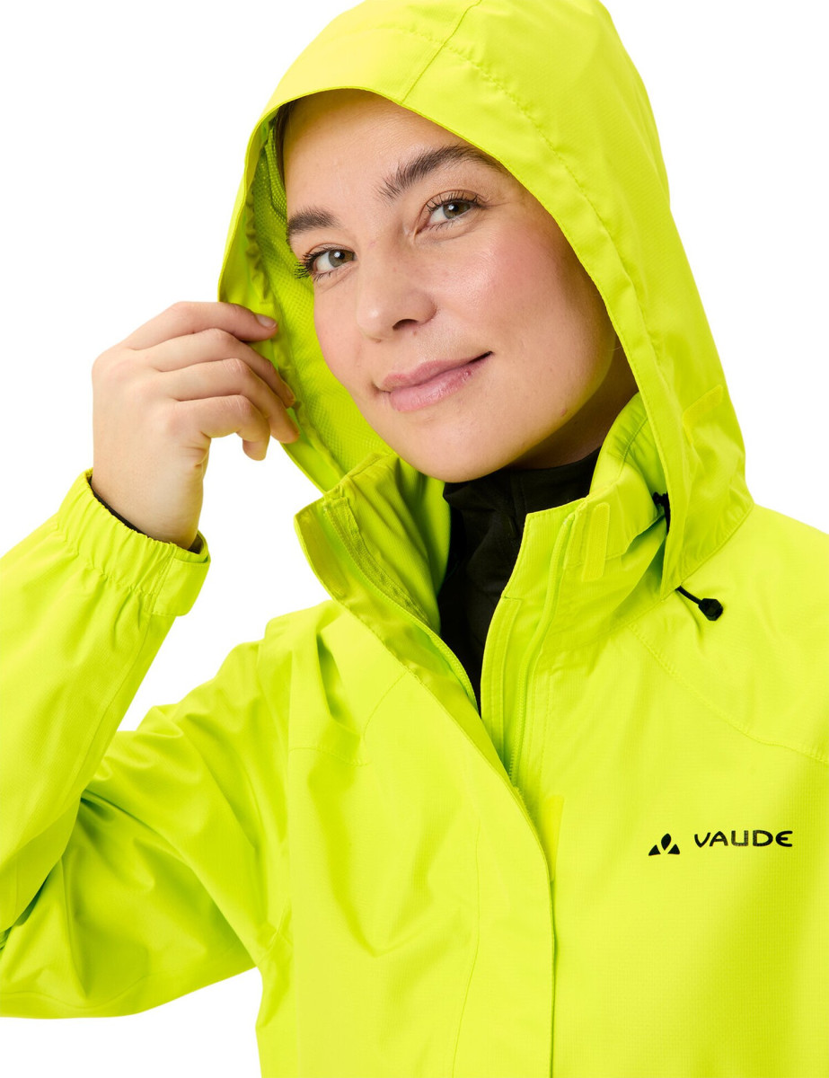 Umweltfreundlicher Regenschutz. Die leichte 2 Lagen-Regenjacke mit dünnem Netzfutter schützt Dich in Deinem Radalltag zuverlässig vor Nässe und Wind. Die Kapuze kann aufgerollt im Kragen verstaut werden. Mit reflektierenden Elementen. Das Material wird besonders umweltschondend nach dem bluesign®-Standard hergestellt. Dieses Produkt ist mit Eco Finish umweltfreundlich wasserabweisend ohne Fluorcarbone (PFC) hergestellt. Das VAUDE Green Shape-Label steht für ein umweltfreundliches, funktionelles Produkt aus nachhaltigen Materialien.