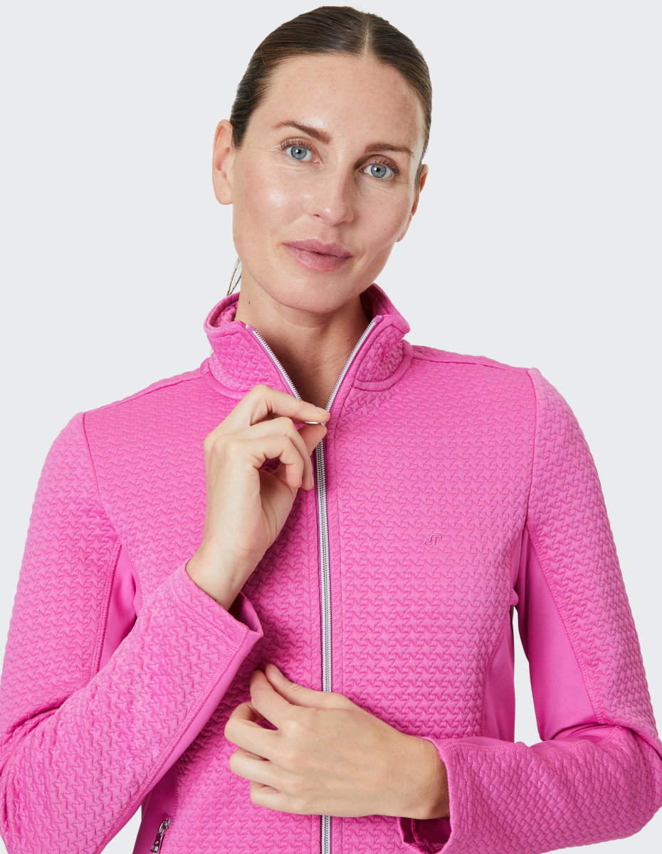 Ihr neuer Trainingspartner für jede Outdoor-Sportart vom Laufen übers Radfahren bis hin zum Golfen: die Sportjacke für Damen SOLVEIG. Egal, für welche sportlichen Aktivitäten an der frischen Luft Sie sich entscheiden die Jacke bietet Ihnen stets hohen Tragekomfort. Sportiver Materialmix mit Elasthan Strukturmaterial mit Elasthan Glattes elastisches Funktionsmaterial Die Trainingsjacke für Damen SOLVEIG hält Sie bei jedem Wetter warm und bietet Ihnen gleichzeitig optimale Bewegungsfreiheit. Ihr Schnitt und Design sind nicht nur sportlich, sondern auch feminin, weshalb Sie SOLVEIG genauso gerne als Freizeitjacke für Damen nutzen werden. Nach der Yogastunde, auf dem Weg zum Bäcker oder beim Sonntagsspaziergang ist die Freizeit- und Sportjacke SOLVEIG ein geeigneter Begleiter bei Wind und Wetter.