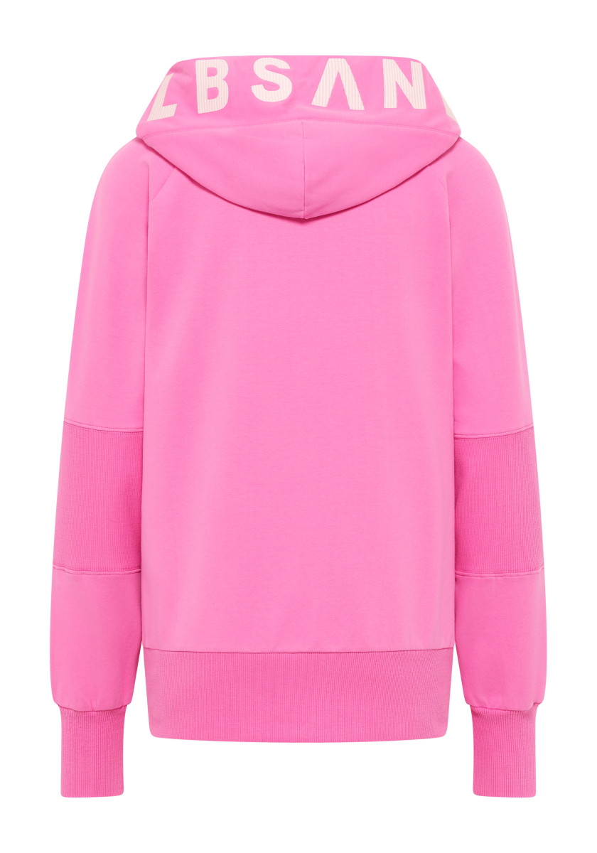 Voluminöse Kapuze | Raglanärmel mit Rippmaterialeinsatz | Kängurutasche | Logo Badge auf den Ärmeln | Gestickte Ösen, breiter Kordel mit Metallenden | Elbsand-Prägung