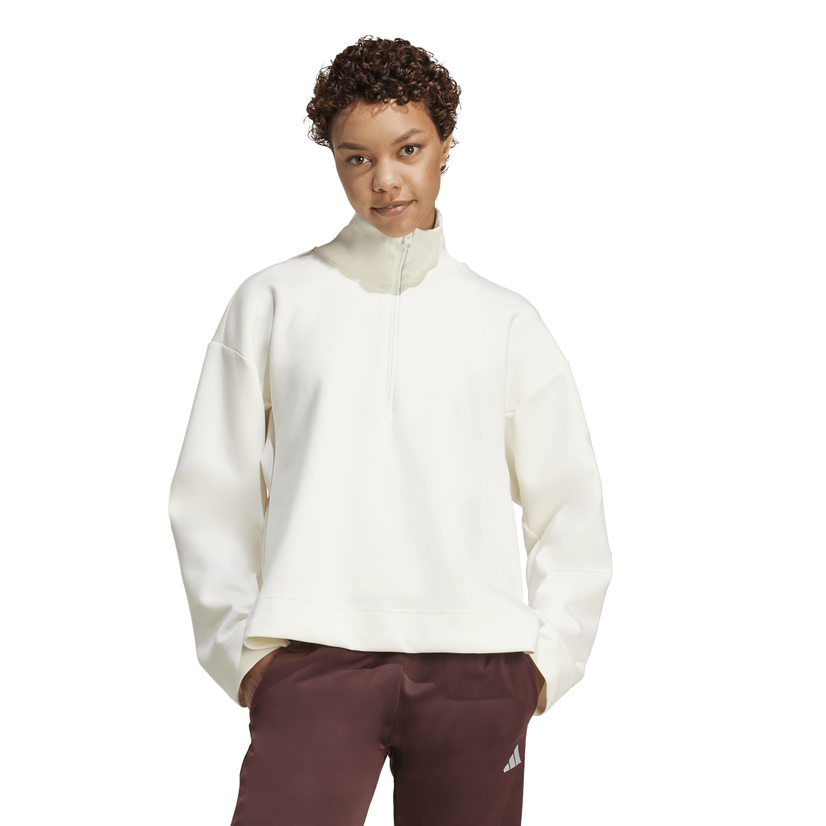 Dieses Sweatshirt von adidas ist aus kuscheligem Spacer-Material gefertigt, das für ein angenehm flauschiges Gefühl angeraut ist und Modal enthält, wodurch es noch weicher wird. Fledermausärmel und offene Säume mit Schlitzen verleihen dem Modell mit Reißverschluss bis zur Brust eine lässige Form und einen stylishen Look. Egal, ob du unterwegs bist oder zu Hause bleibst, dieses Oberteil vereint Komfort mit schlichtem Stil.
