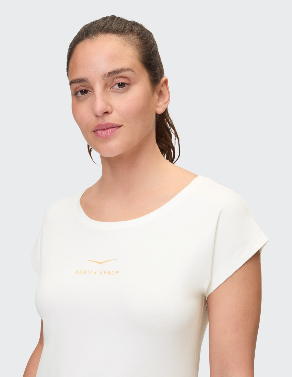 T-Shirt WONDER für Damen mit weiter Schnittform: Funktionalität und Komfort für optimale Performance! Bequemer Schnitt, ideale Passform und viel Bewegungsfreiheit: All das zeichnet das T-Shirt WONDER mit weiter Schnittform aus. Ob cozy auf der Couch, beim schweißtreibenden Fitness-Training oder beim Brunch mit Ihrer besten Freundin. Als multifunktionelle Activewear überzeugt das T-Shirt für Damen auf ganzer Linie. Das hochwertige Material fühlt sich hervorragend weich auf der Haut an. Für ein Training ohne Grenzen transportiert es beim Sport die Feuchtigkeit vom Körper weg und hält bei kühleren Temperaturen angenehm warm. Das T-Shirt WONDER liefert optimale Performance sowie Dynamik und ist somit die perfekte Wahl für jede sportliche Herausforderung. Das T-Shirt für Damen vereint nicht nur Funktionalität und Komfort, auch der Look ist modern. Inspiriert vom Flair des legendären Strandes in Los Angeles ist das Shirt beim Training und im Alltag sowie in der Freizeit ein modisches Highlight.