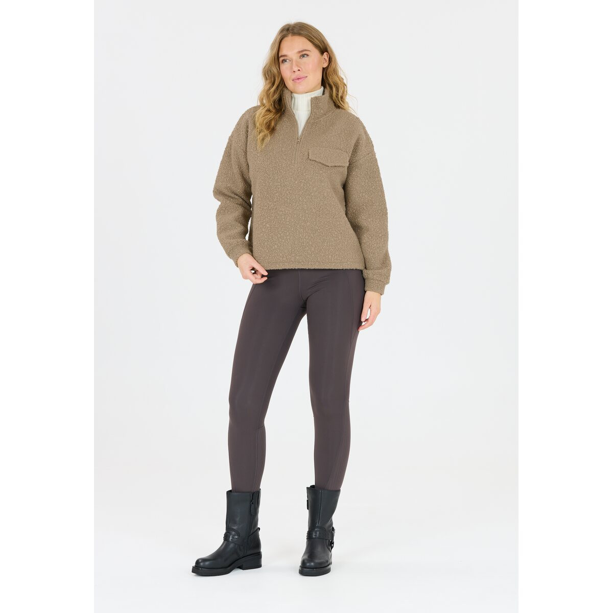 Sportlich und kuschlig zugleich – das ist der Damenpulli "Florrie W Sherpa Half Zip" von Athlecia! Er ist aus einem superweichen Polyester-Teddyfleece hergestellt, das dir eine angenehme Wärme und jede Menge Komfort bietet. Der Saum lässt sich verstellen und die Ärmelbündchen sind elastisch. Der smarte Halbreißverschluss verleiht dem Pullover nicht nur einen angesagten Look, sondern ermöglicht auch ein einfaches An- und Ausziehen sowie angenehme Belüftung. Ein stylischer Begleiter mit smarten Details!