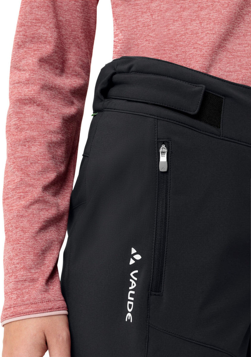 Eine nachhaltige und robuste Hose für jeglichen Outdoorsport im Herbst und Winter: Die Elope Softshellhose für Damen. Sie ist winddicht und wasserabweisend, gleichzeitig ist das Material hoch atmungsaktiv und transportiert Feuchtigkeit zuverlässig nach außen. Die angeraute Innenseite fühlt sich angenehm auf der Haut an und hält kuschelig warm. Der stretchige Stoff, der ergonomische Schnitt und der hohe, verstellbare Bund machen die Damen Softshellhose unglaublich bequem und sorgen dafür, dass sie nirgendwo kneift. Die zwei Fronttaschen mit Reißverschluss bieten Platz für alles, was man braucht: ein Smartphone, einen Geldbeutel oder Schlüssel. All diese praktischen Features machen die Hose zur perfekten Begleiterin für Schneeschuhwanderungen und Spaziergänge an kalten, windigen Tagen. Sie ist mit Eco Finish PFC-frei wasser- und schmutzabweisend ausgerüstet. Das VAUDE Green Shape-Label steht für ein umweltfreundliches, funktionelles Produkt aus nachhaltigen und bluesign® zertifizierten Materialien.