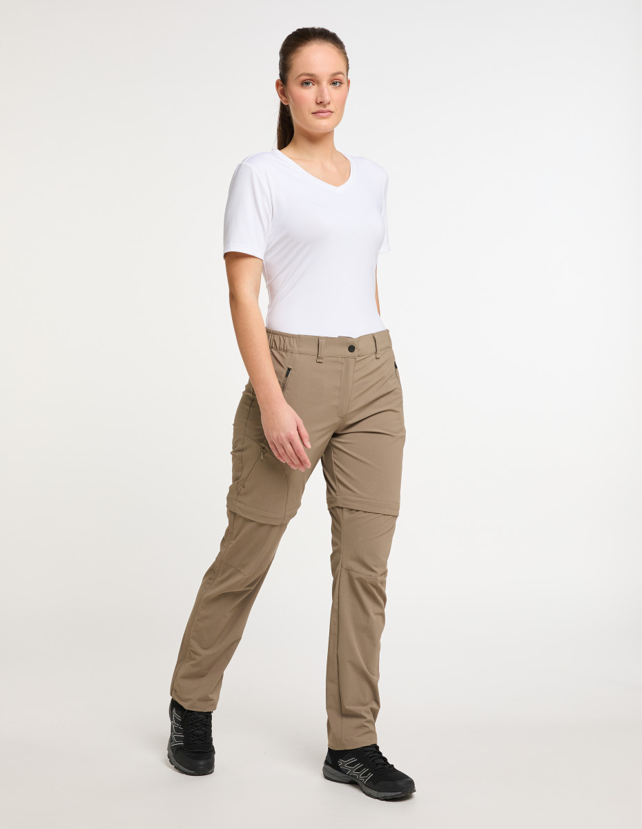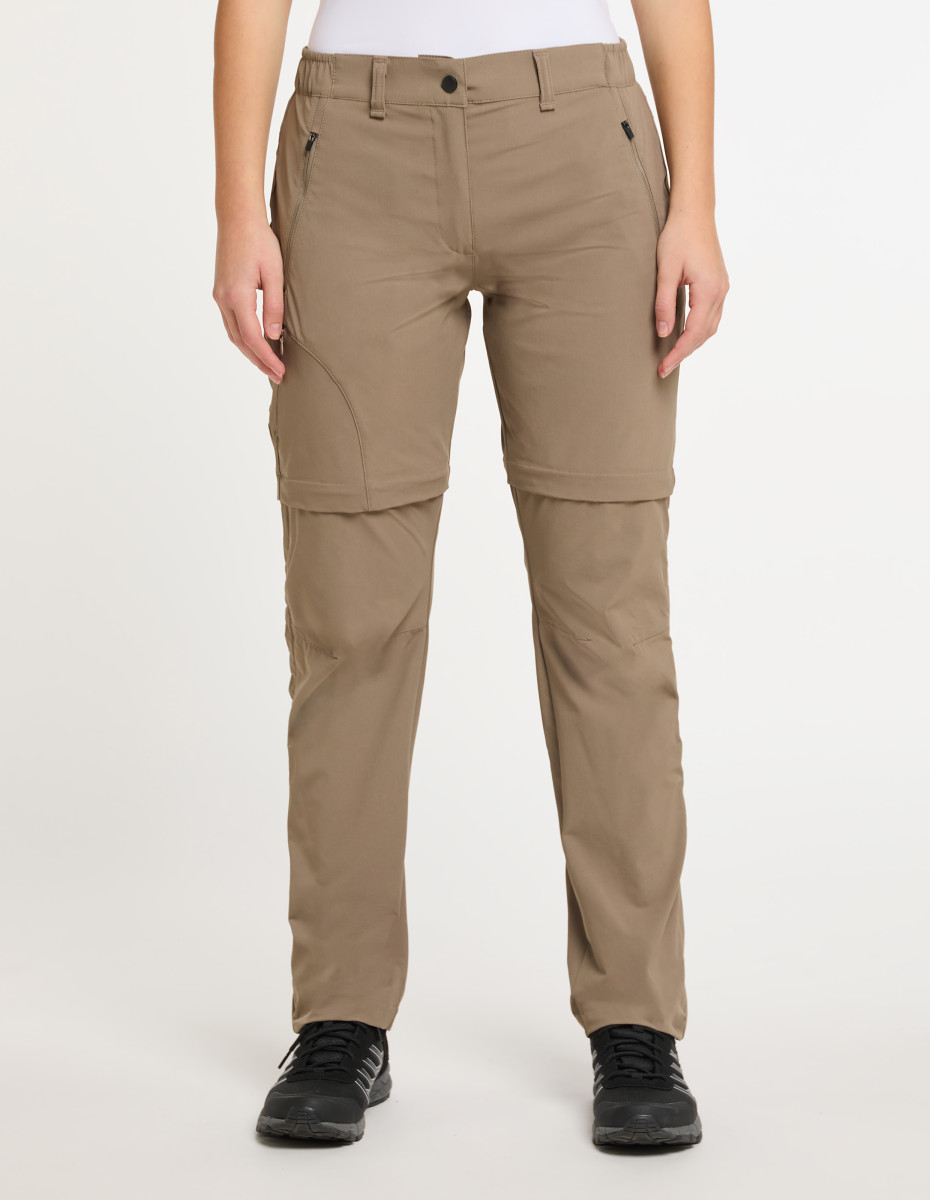 Entdecken Sie die vielseitige Damen-Wanderhose BAVELLA L_T-Zip mit abnehmbarem Bein und 3 Taschen. Diese Hose ist perfekt für aktive Abenteurer wie Sie, die maximale Bewegungsfreiheit, Tragekomfort und Stil suchen. Die BAVELLA L_T-Zip ist mit einem teilelastischem Bund mit innenliegendem Gummi ausgestattet, was Ihnen uneingeschränkte Flexibilität bietet. Egal ob Sie steile Berge erklimmen, durch dichte Wälder wandern oder einfach nur die Natur genießen - diese Hose passt sich Ihren Bewegungen an und bietet Ihnen den ganzen Tag über hervorragenden Komfort. Durch das abnehmbare Bein können Sie die Hose jederzeit den vorherrschenden Temperaturen anpassen. Ob lang oder kurz, die BAVELLA L_T-Zip lässt Sie immer gut aussehen und sorgt dafür, dass Sie sich in jeder Situation wohl fühlen. Dank der 3 praktischen Taschen haben Sie genügend Platz für Ihre Essentials. Die atmungsaktive und wasserabweisende Funktion der BAVELLA L_T-Zip unterstützt Sie optimal bei Wind und Wetter, sodass sie uneingeschränkt jedes Outdoor-Abenteuer bestreiten können!