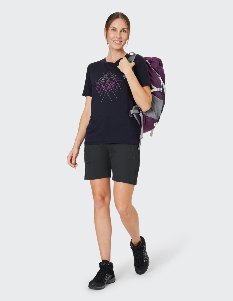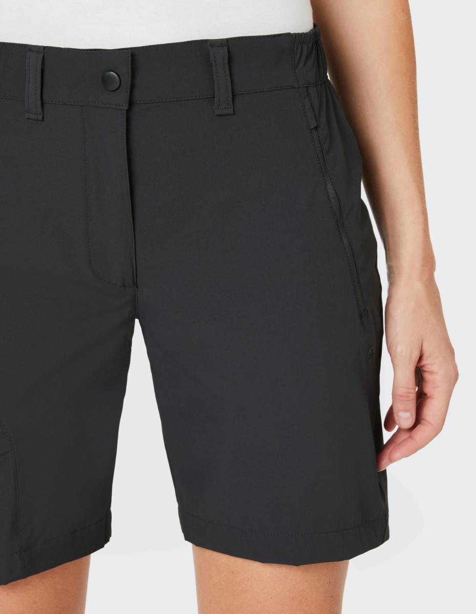 Entdecken Sie die Classic Light 4-Way Stretch Hose BAVELLA L_Shorts von HOT sportswear - ein absoluter Hingucker für Ihren nächsten Spaziergang. Mit ihrem teilelastischen Bund mit innenliegendem Gummi sowie praktischen Gürtelschlaufen, gewährleistet die BAVELLA L_Shorts optimalen Sitz sowie individuelle Passform und ermöglicht Ihnen ein unbeschwertes Wandern. Die Passe hinten sorgt für einen optimalen Sitz und uneingeschränkte Bewegungsfreiheit. Mit 2 Reißverschlusstaschen vorne und einer Reißverschlusstasche am Oberschenkel, haben Sie viel Stauraum in denen Sie Ihre Wertgegenstände sicher verstauen können. Die Shorts sind zusätzlich durch das hochwertige 4-Way-Stretch Material hochfunktionell, schnelltrocknend, atmungsaktiv und wasserabweisend.