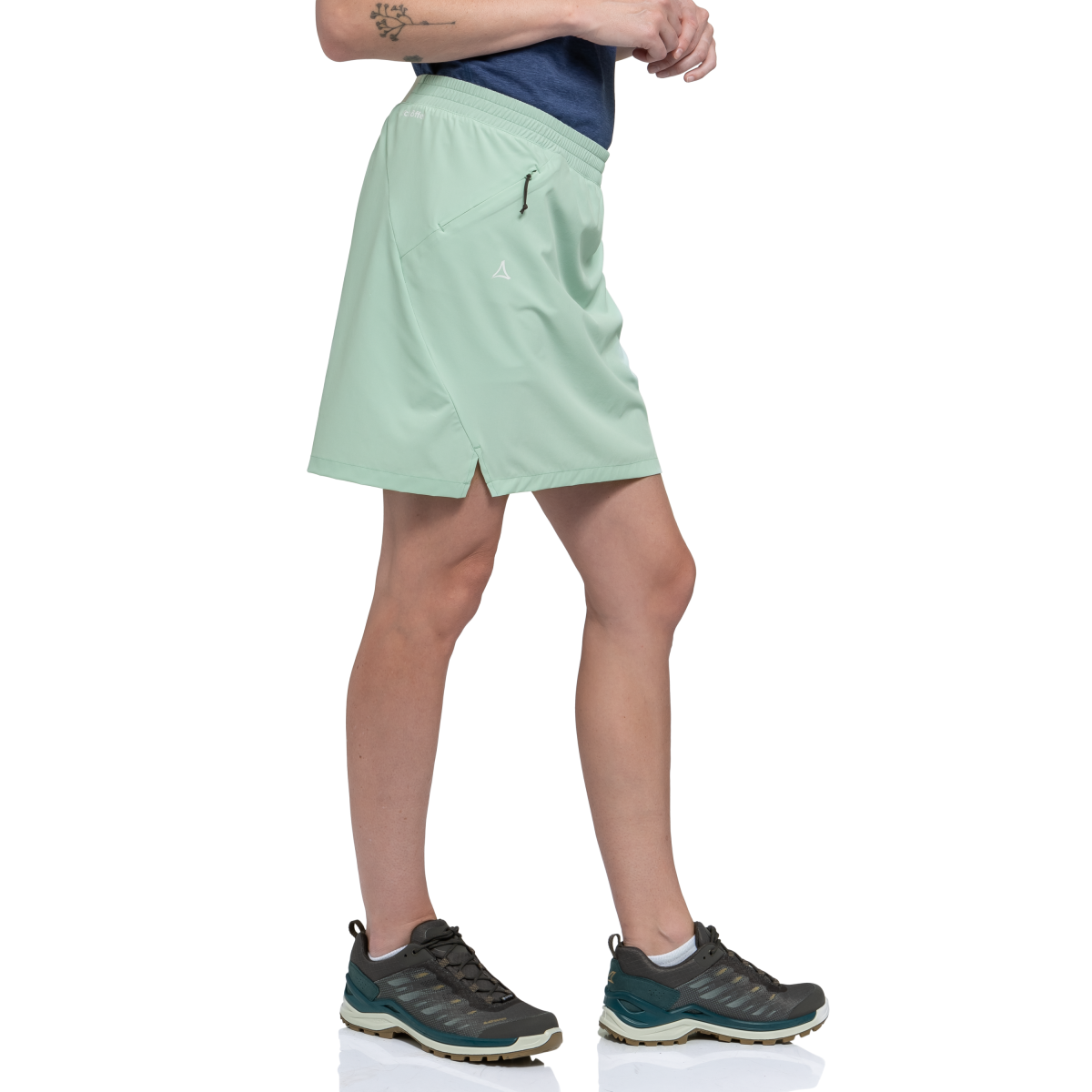 Mit diesem Wander-Rock kannst Du die Natur in vollen Zügen genießen. Die Kombination aus 4-Wege-Stretch und integrierter Innenhose bietet maximale Bewegungsfreiheit und zusätzlichen Komfort bei Deinen Wanderungen. Das recycelte Material leitet Feuchtigkeit zuverlässig ab und trocknet schnell, während der elastische Bund eine bequeme Passform sicherstellt. Eine praktische Reißverschlusstasche sorgt dafür, dass wichtige Kleinigkeiten immer griffbereit sind. Perfekt für alle, die Bewegungsfreiheit und Funktionalität stilvoll kombinieren möchten.