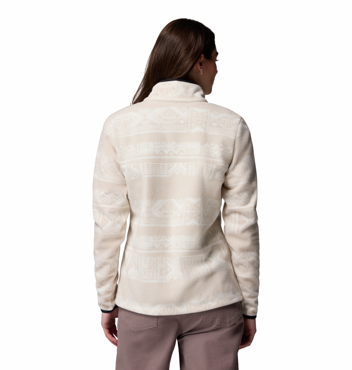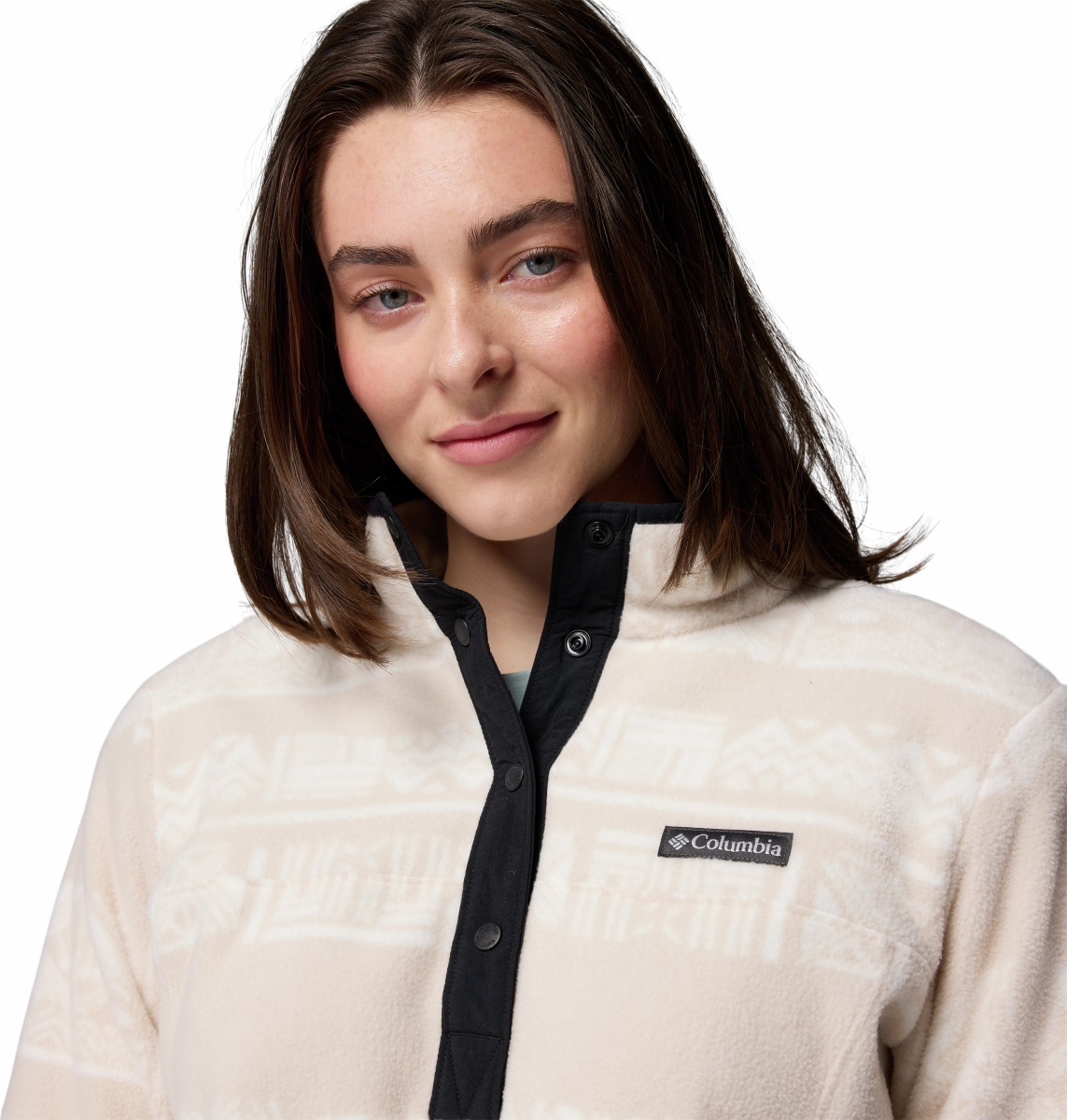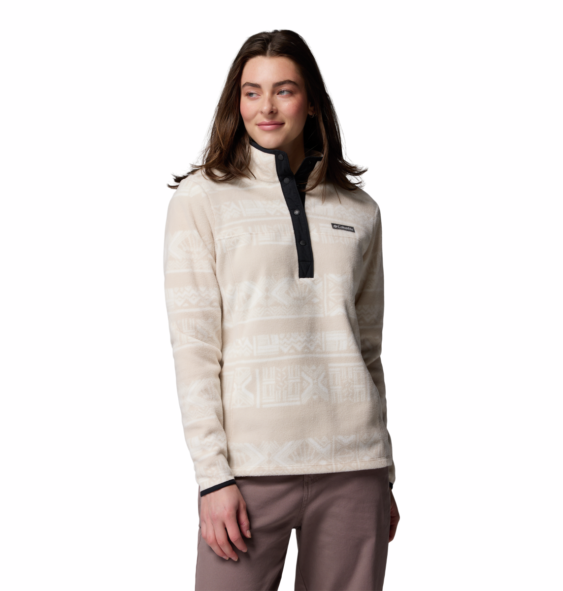 Stylisch eingepackt: Das bedruckte Half-Snap-Fleece aus superweichem Material hat einen hohen Kragen, der die Kälte abhält, sowie weiche Abschlüsse an Kragen und Ärmelbündchen für zusätzlichen Komfort.