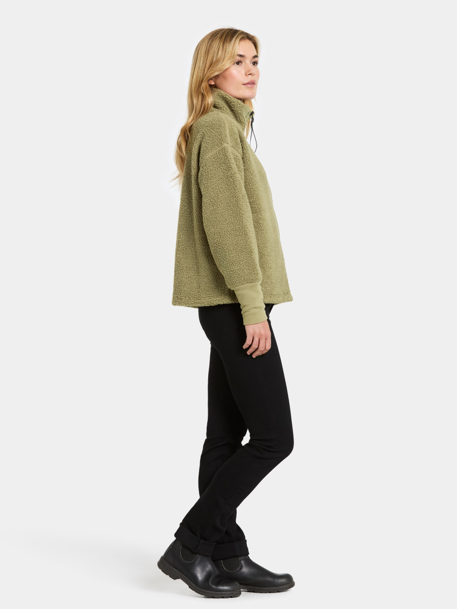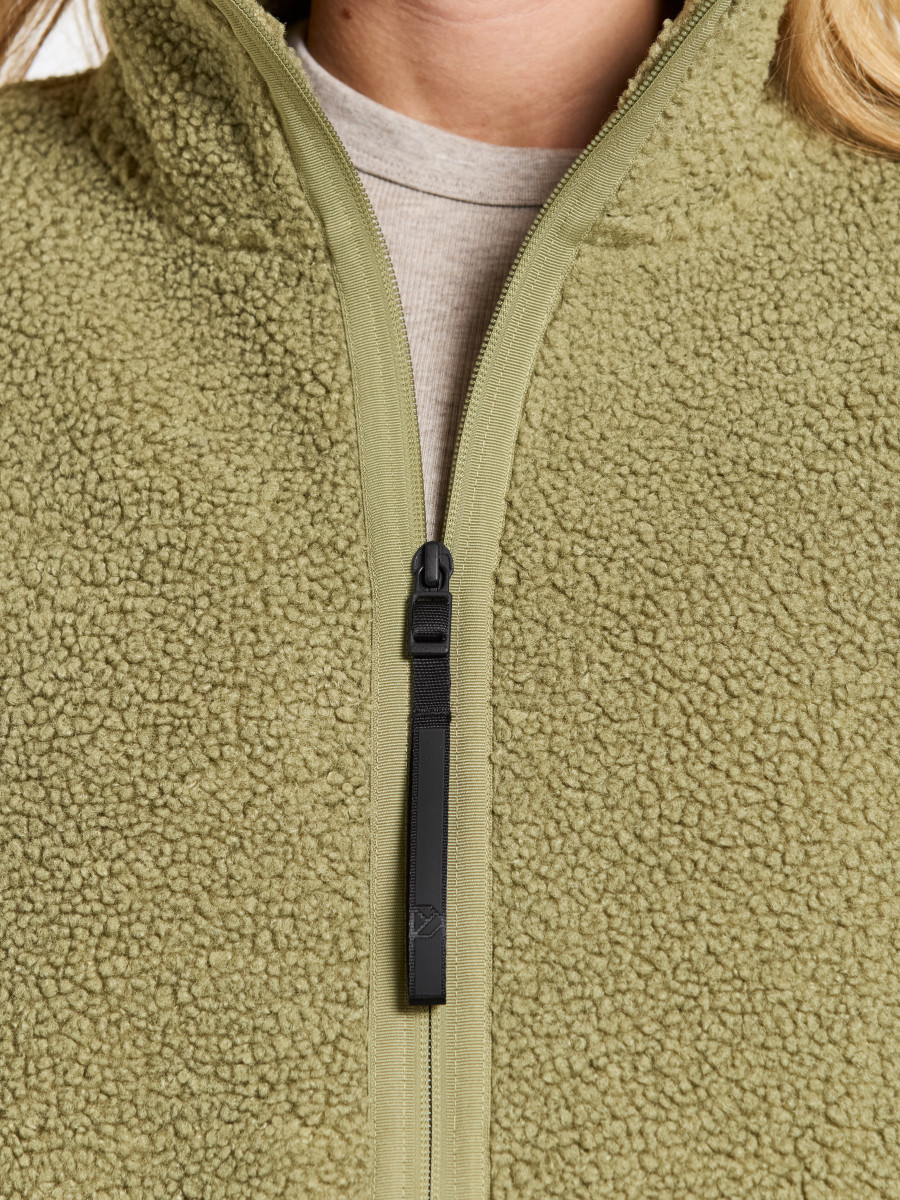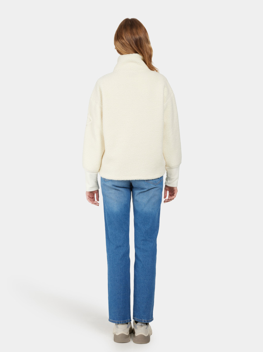 Mella ist ein weicher und bequemer Full-Zip-Pullover aus Fleece-Stoff, perfekt zum Schichten an kühlen Tagen. Er hat eine gerade Passform und ist so gestaltet, dass er ein entspanntes Tragegefühl bietet. Der Pullover verfügt über elastische Bündchen und einen Frontreißverschluss, der dank des Kragendesigns nie direkt am Kinn anliegt. Praktische Seitentaschen bieten Platz für kleine Gegenstände.
