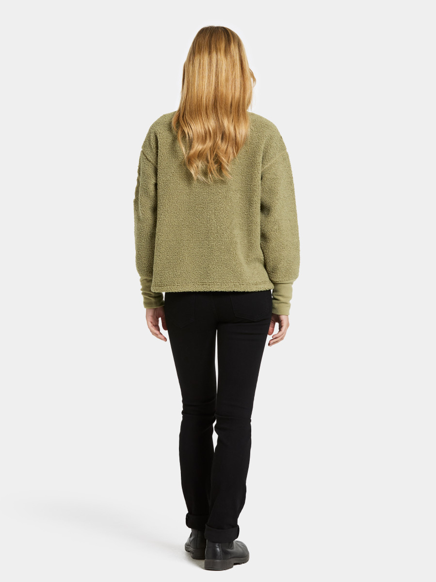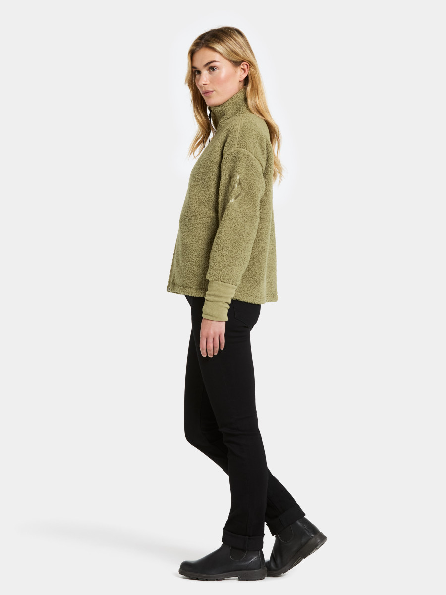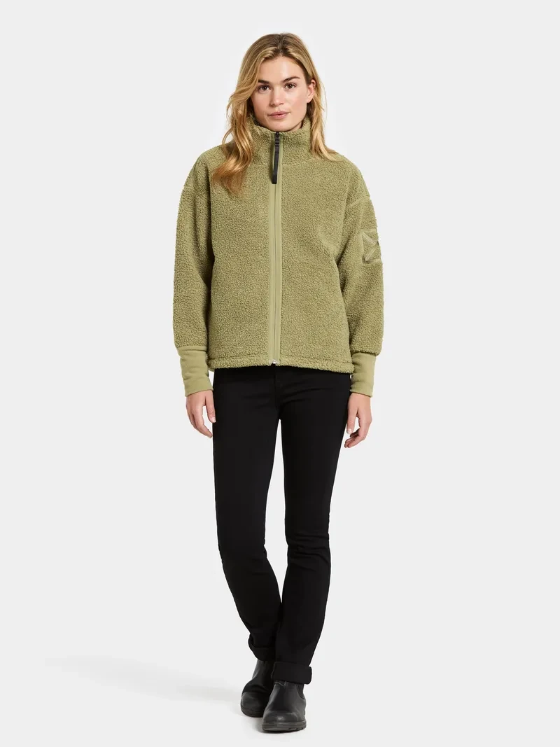 Mella ist ein weicher und bequemer Full-Zip-Pullover aus Fleece-Stoff, perfekt zum Schichten an kühlen Tagen. Er hat eine gerade Passform und ist so gestaltet, dass er ein entspanntes Tragegefühl bietet. Der Pullover verfügt über elastische Bündchen und einen Frontreißverschluss, der dank des Kragendesigns nie direkt am Kinn anliegt. Praktische Seitentaschen bieten Platz für kleine Gegenstände.