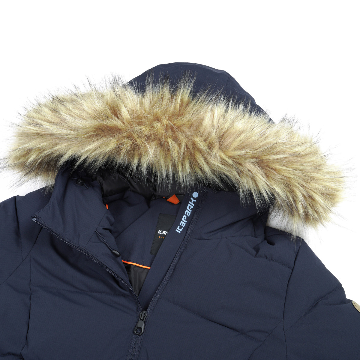 Der Parka Icepeak Brilon Women hält durch die dicke Daunenimitatfüllung schön warm und ist dabei leicht. Der Kunstpelz am Kapuzenrand des Parkas lässt sich bei Bedarf leicht abnehmen. Die Ärmel haben elastische innere Ärmelbündchen, die Kälte und Feuchte draußen halten. Dank des wasserabweisenden Finish bleibst du trocken und warm.