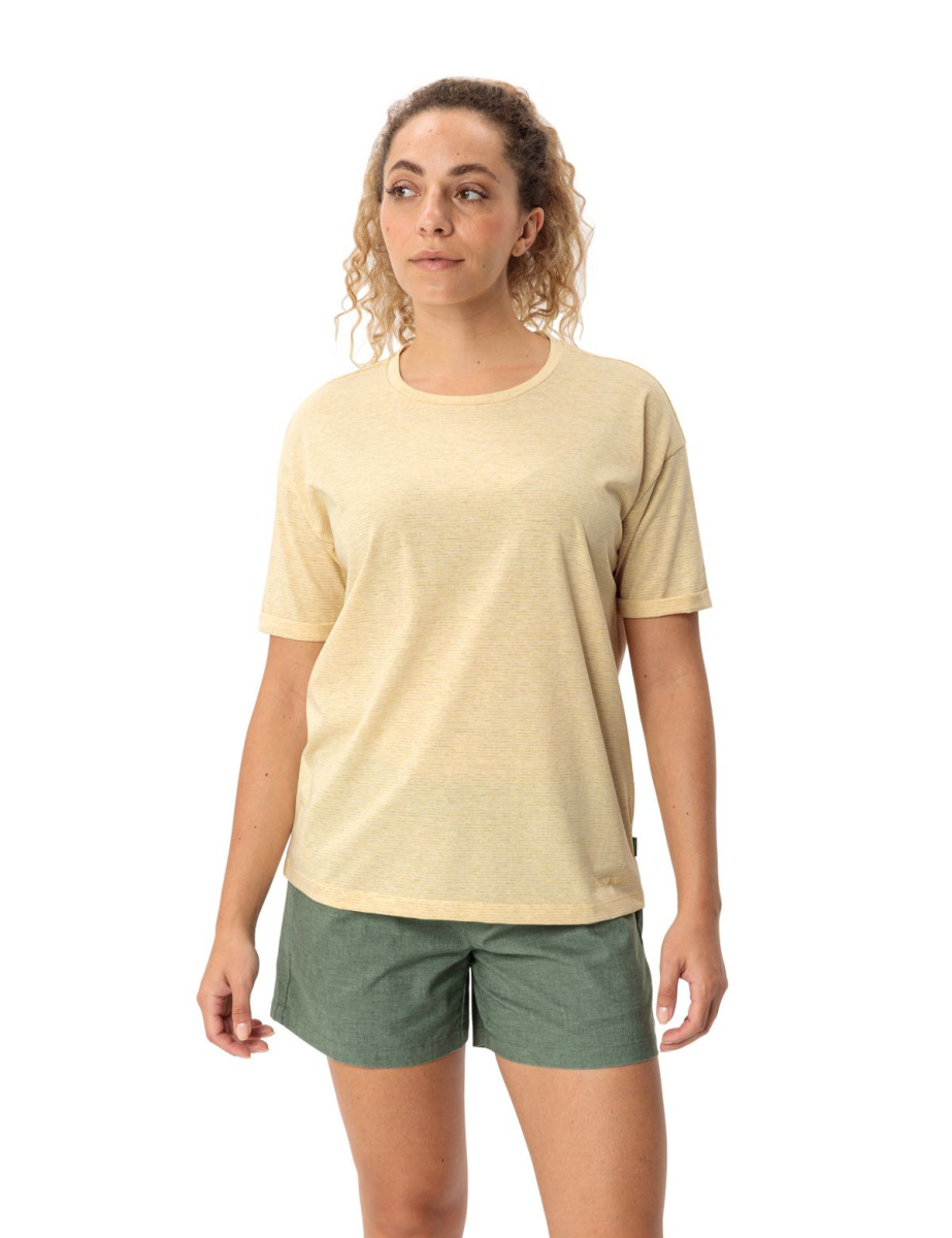 Beqemes, feminines Damen T-Shirt aus vollständig recyceltem Material. Hübsche Details wie die feine Streifenoptik, die etwas längeren Ärmel mit umgeschlagenem Saum und die leicht überschnittenen Schultern machen dieses pflegeleichte, vielseitige Damen T-Shirt zum Dauerbegleiter im Sommer. Das VAUDE Green Shape-Label steht für ein umweltfreundliches, funktionelles Produkt aus nachhaltigen und bluesign® zertifizierten Materialien.