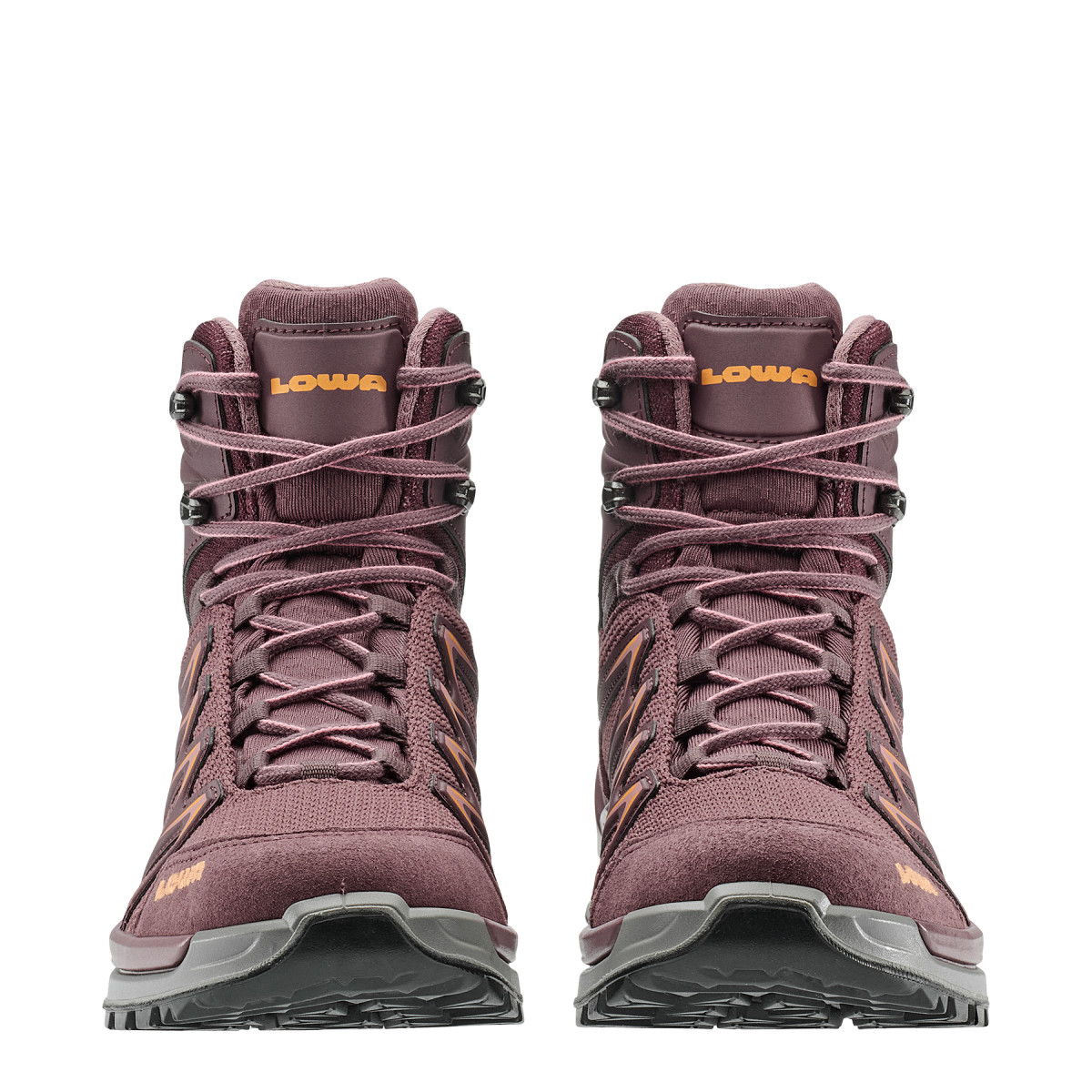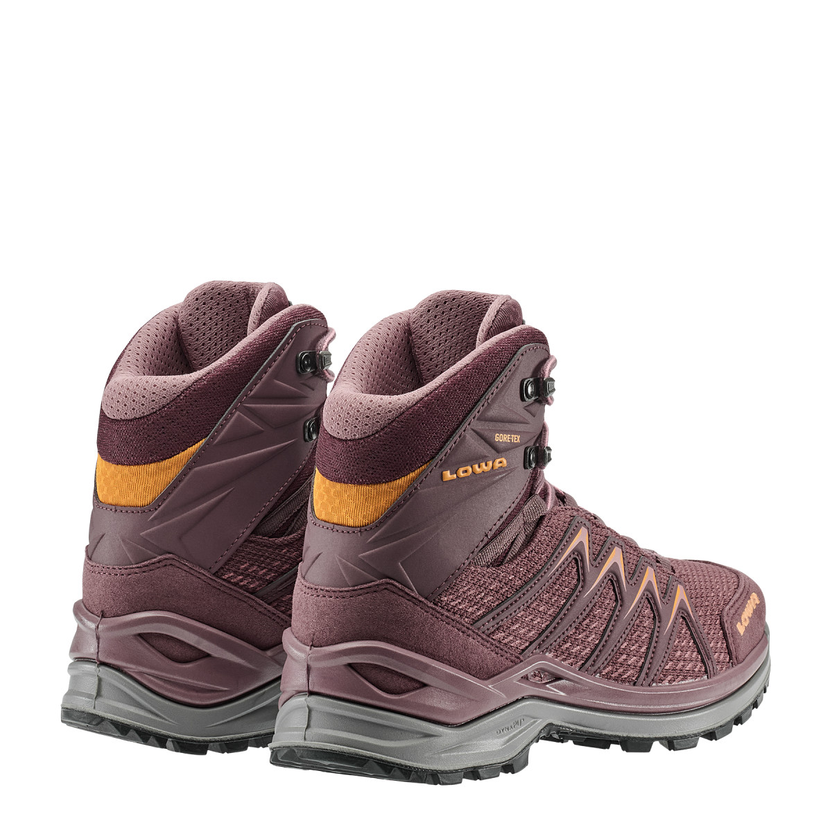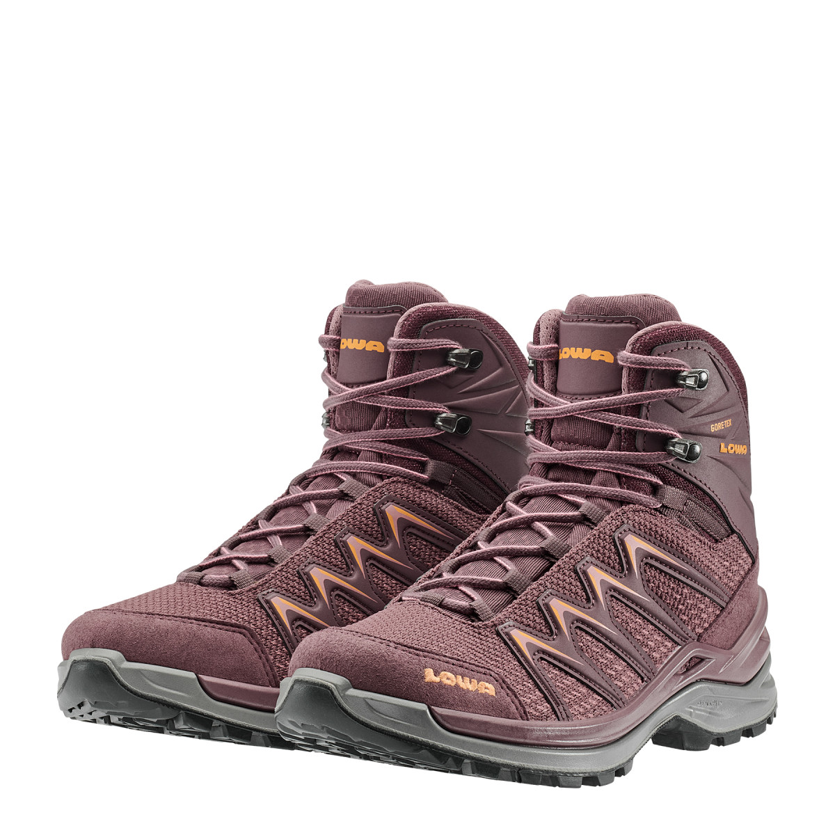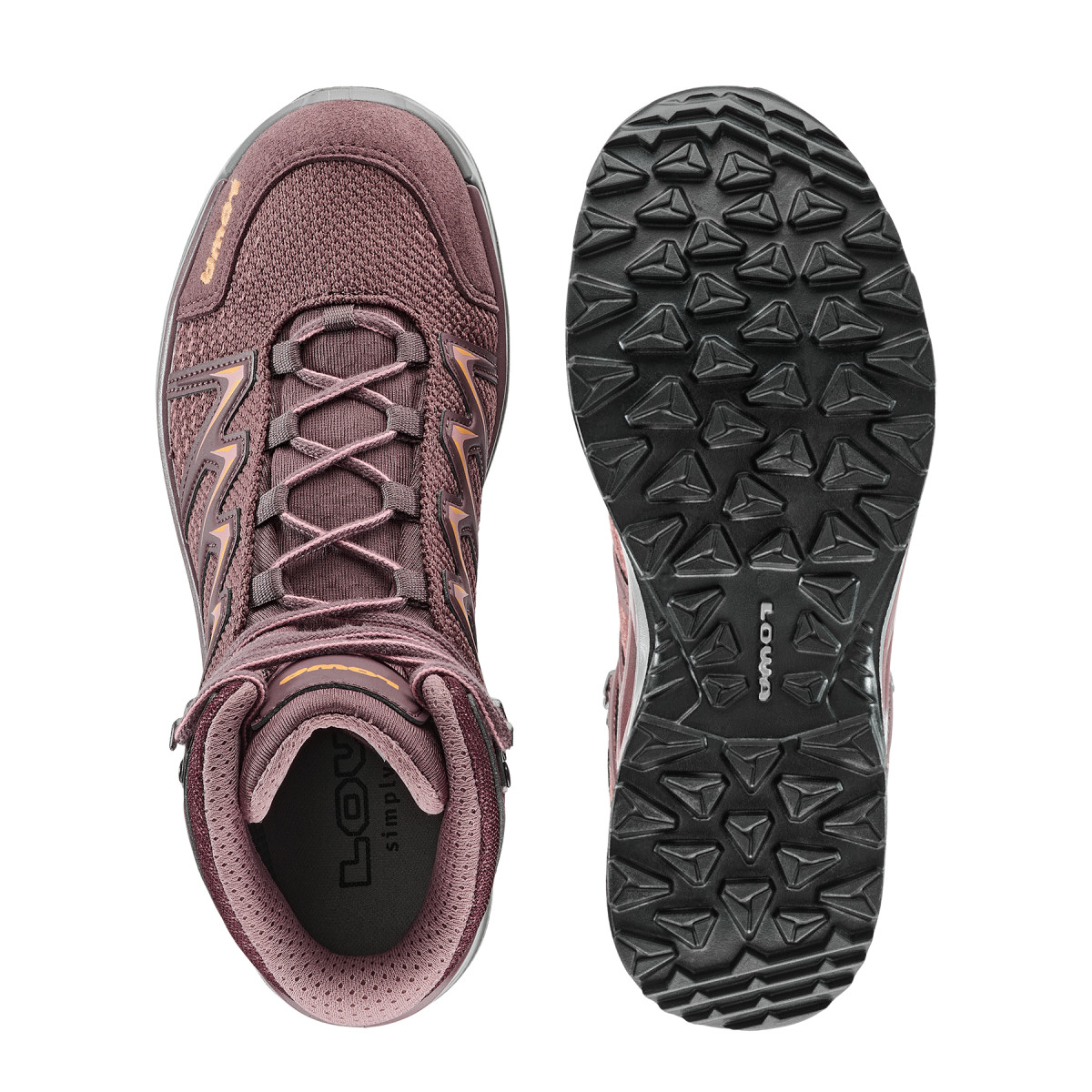 Überraschend flexibel präsentiert sich das farbenfrohe Multitalent INNOX PRO GTX MID Ws, wenn aus einem kurzen Spaziergang in der Natur doch einmal eine ungeplante Wander-Herausforderung wird. Mit absoluter Leichtigkeit bewältigt der INNOX PRO GTX MID auch kurze Abstecher in unbekanntes Terrain. Denn während die Zwischensohle aus LOWA DynaPU® für die nötige Dämpfung sorgt, bietet der innovative LOWA-MONOWRAP®-Rahmen beste Fuß-Führung bei jedem Schritt im Gelände.