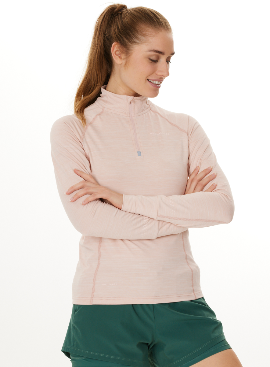 Das neue und vielseitige Funktionsshirt CANNA V2 MELANGE PERFORMANCE für Damen von ENDURANCE überzeugt durch maximale Bewegungsfreiheit sowie hervorragenden Tragekomfort. Es lässt sich schnell und universell zum coolen Sportoutfit kombinieren. Das atmungsaktive Material mit der QUICK DRY-Technologie leitet Feuchtigkeit von der Haut ab undlässt sie dadurch schneller verdunsten. Es sorgt für ein angenehmes, trockenes Tragegefühl und verhindert ein Auskühlen. Der Stehkragen mit kurzem Reißverschluss bietet Schutz vor Wind, während Daumenöffnungen ein Verrutschen der Ärmel verhindern. Die vielen kleinen reflektierenden Elemente gewährleisten zudem mehr Sicherheit im Straßenverkehr bei Dunkelheit. Abgerundet wird das Paket durch die schöne Melange-Qualität und das sportliche, schlichte Design. Ein top Preis-Leistungsverhältnis gibt es obendrein!