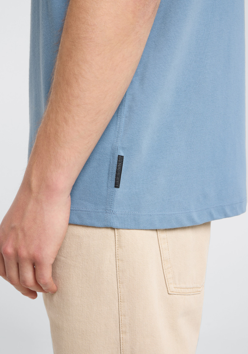 Der Rundhalsausschnitt und der dezente Print auf der Brust verleihen dem Shirt einen zeitlosen Style, der trotzdem nicht langweilig ist. Ein kleines Logo-Badge an der Seitennaht rundet das Design unaufdringlich ab. Jivo ist dein zuverlässiger Alltagsbegleiter – minimalistisch, aber mit Stil.