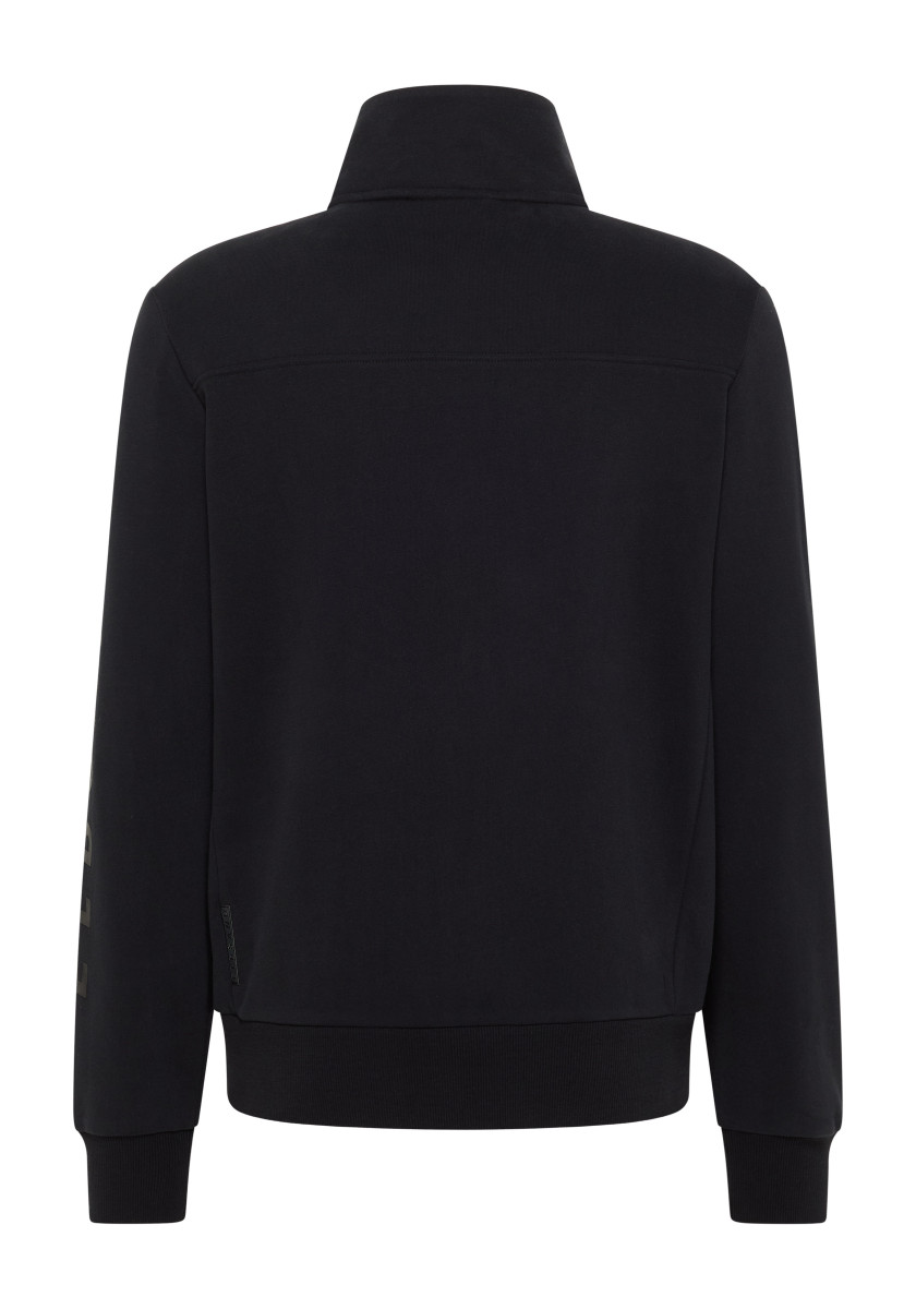 Diese sportliche Sweatjacke ist ein vielseitiges Basic für Freizeit und Alltag. Das glatte, schwarze Material verleiht ihr einen cleanen und modernen Look. Ausgestattet mit einem hohen Stehkragen und einem durchgehenden Reißverschluss, bietet die Jacke optimalen Schutz. Die gerippten Bündchen an Ärmeln und Saum sorgen für eine bequeme Passform, während der lockere Schnitt Bewegungsfreiheit garantiert. Ideal für den sportlichen Alltags-Look, lässt sich die Jacke mühelos mit Jeans, T-Shirts oder Sneakern kombinieren.