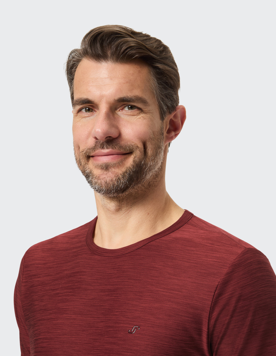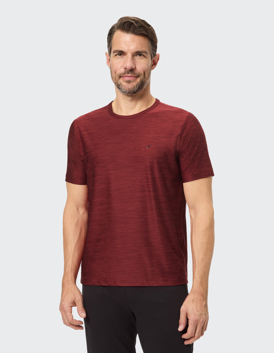 Entdecke das T-Shirt VITUS von JOY sportswear. Das Funktionsshirt VITUS von JOY sportswear ist aus einem Material in sportiver Melange-Optik und mit kontrastfarbigen Flachnähten versehen. Der hoch abschließende Rundhalsausschnitt hat ein reibungsarmes Nackenband eingearbeitet. Das dehnbare Material sorgt für einen hohen Feuchtigkeitstransport von der Haut an die Außenseite und hat einen angenehm glatten Griff.