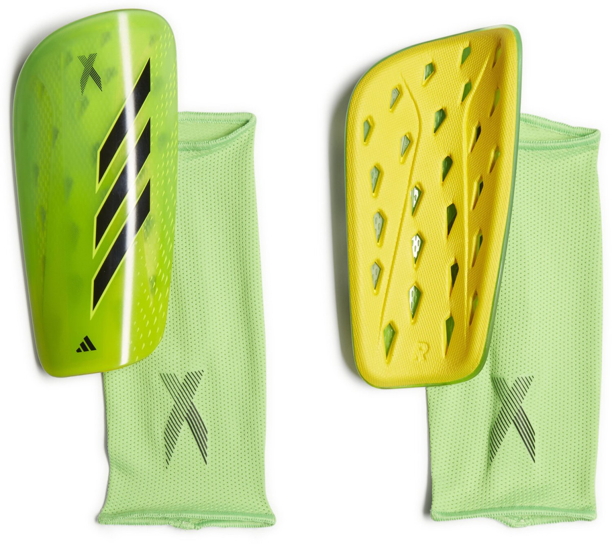 Mit der adidas X Serie erlebst du eine neue Dimension an Speed. Ein Grund mehr, mit der richtigen Ausrüstung vorzusorgen. Auch wenn sie nahezu chancenlos ist, wird die Verteidigung versuchen, dich aufzuhalten. Diese Schienbeinschoner sind ideal für den Spieltag. Sie sind aus leichtem, aber robustem Kunststoff für optimale Bewegungsfreiheit. Die perforierte Dämpfung erhöht die Atmungsaktivität, während das asymmetrische Design im unteren Beinbereich eine perfekte Passform garantiert. Eine Kompressionsmanschette sorgt außerdem für einen rutschsicheren Sitz.Lief.-Art-Nr: HC0615-X SG LGE