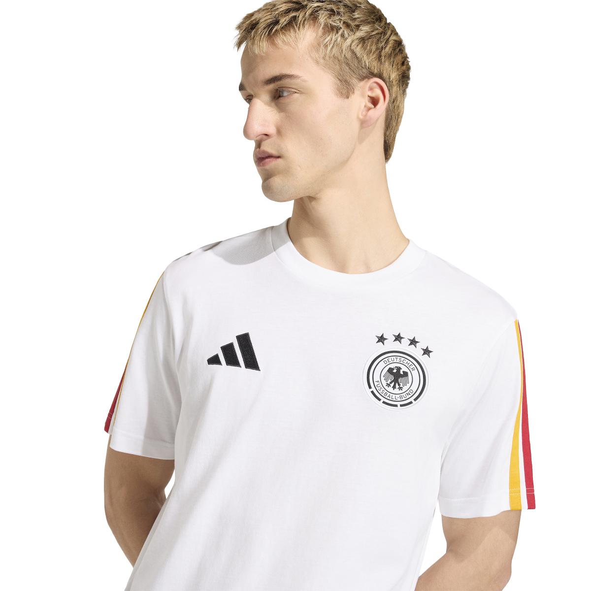 Feiere die Leidenschaft des Fußballs mit dem Germany DNA T-Shirt. Für alle, die den Sport leben – mehr als nur ein Kleidungsstück, sondern ein echtes Statement. Das moderne, von Fußball inspirierte Design sorgt für einen cleanen, vielseitigen Look, der perfekt in den Alltag passt. Rundhalsausschnitt und normale Passform unterstreichen den klassischen Stil. Gefertigt aus weicher Baumwolle bietet das Shirt angenehmen Tragekomfort und Langlebigkeit. Das ikonische Logo von adidas und die typischen 3-Streifen verleihen authentischen Sport-Style. Ideal für alle, die Wert auf Details legen – ob im Stadion oder unterwegs: bequem, stylisch und immer passend.