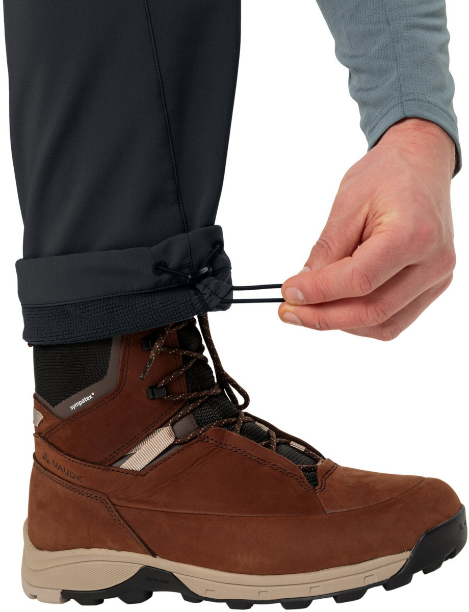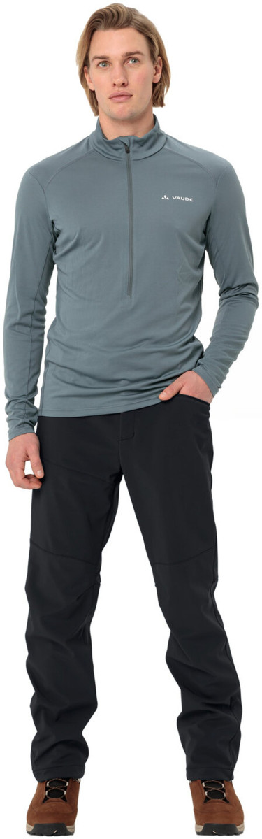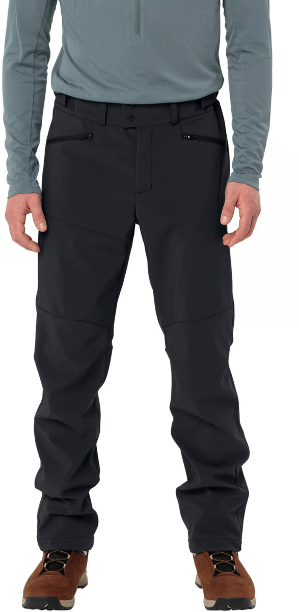 Die nachhaltige Herren Elope Softshellhose ist ideal für jeglichen Outdoorsport im Herbst und Winter: Sie ist winddicht und wasserabweisend. Die leicht angeraute Innenseite sorgt für Isolation und macht die Hose angenehm warm - perfekt also zum Schneeschuhwandern und Rodeln. Zugleich ist das Material hoch atmungsaktiv, transportiert Feuchtigkeit nach außen und schafft so mehr Tragekomfort. Durch den stretchigen Stoff und den lässigen Schnitt sitzt die Herren Softshellhose schön bequem. Zwei Fronttaschen mit Reißverschluss sowie eine Beintasche bieten Platz für ein Smartphone, einen Geldbeutel oder sonstige Kleingegenstände. Die Softshellhose ist mit Eco Finish PFC-frei wasser- und schmutzabweisend ausgerüstet. Das VAUDE Green Shape-Label steht für ein umweltfreundliches, funktionelles Produkt aus nachhaltigen und bluesign® zertifizierten Materialien.