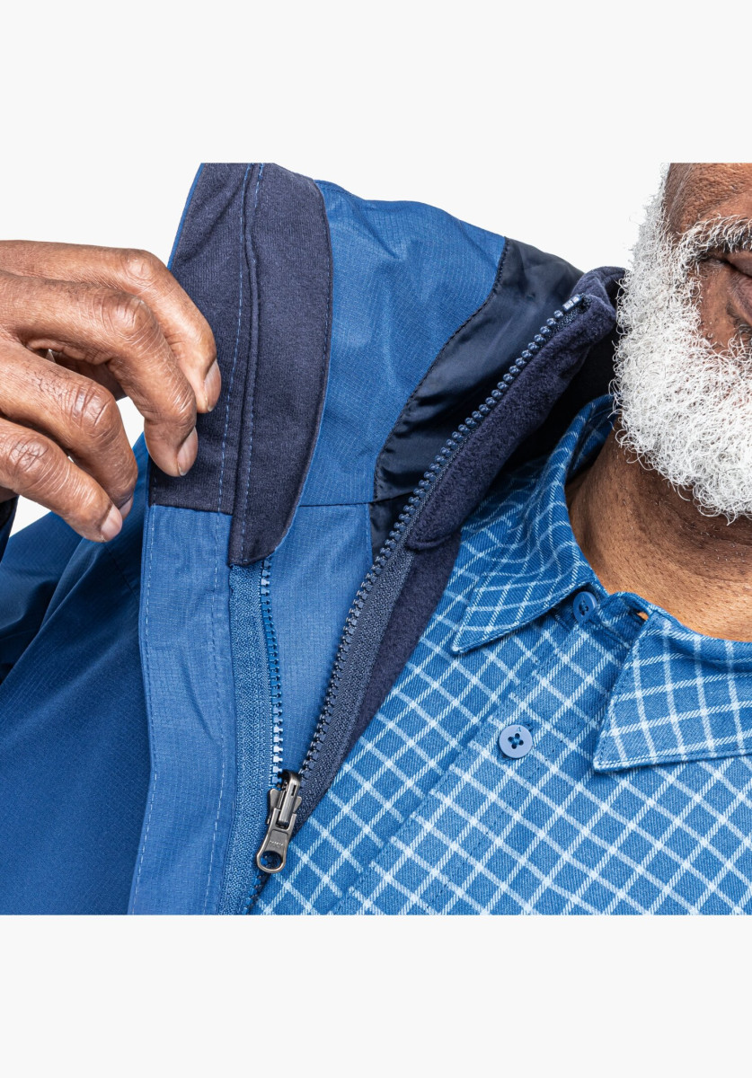 Perfektion trifft auf Funktionalität in der Schöffel 3-in-1 Wanderjacke. Sie zeichnet sich durch ihre 2-Lagen VENTURI® Technologie aus, die für ein angenehmes Tragegefühl bei unterschiedlichsten Outdoor-Aktivitäten sorgt. Mit einer Wassersäule von 10.000 mm und gleichzeitiger Atmungsaktivität hält sie Dich komfortabel. Die fein justierbare Kapuze und die individuell anpassbaren Abschlüsse an Ärmeln und Saum ermöglichen eine individuelle Anpassung, während die Außentaschen zusätzlichen Stauraum bieten.