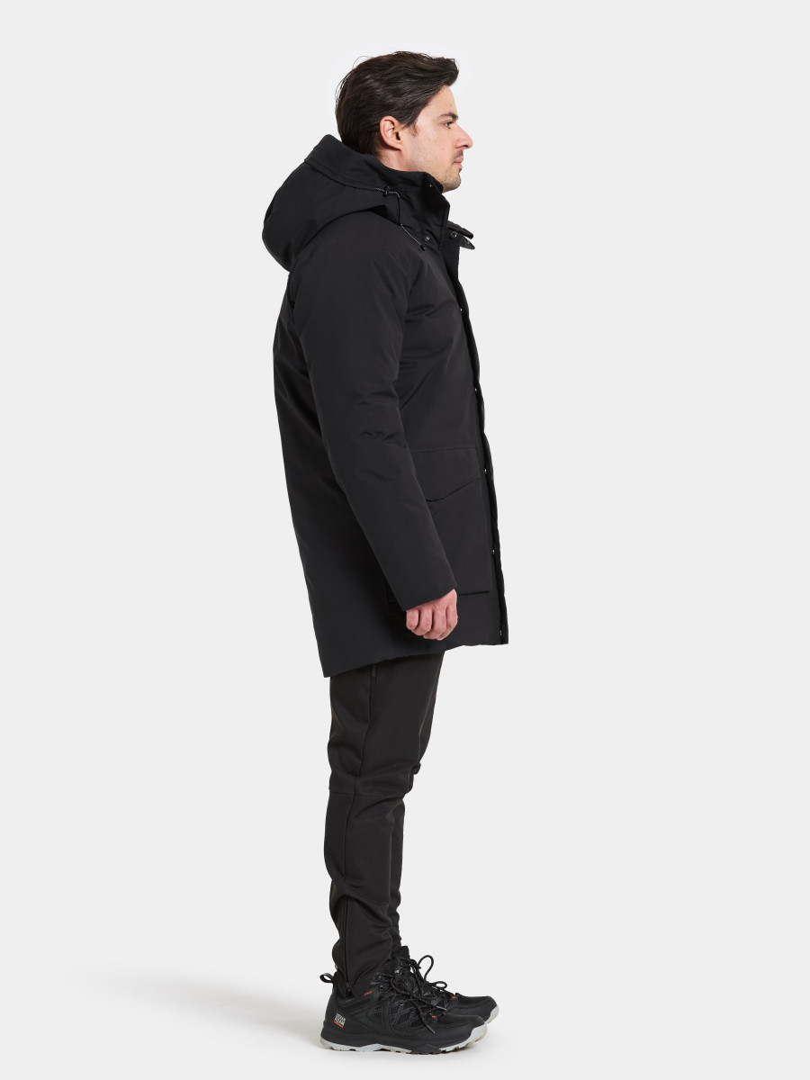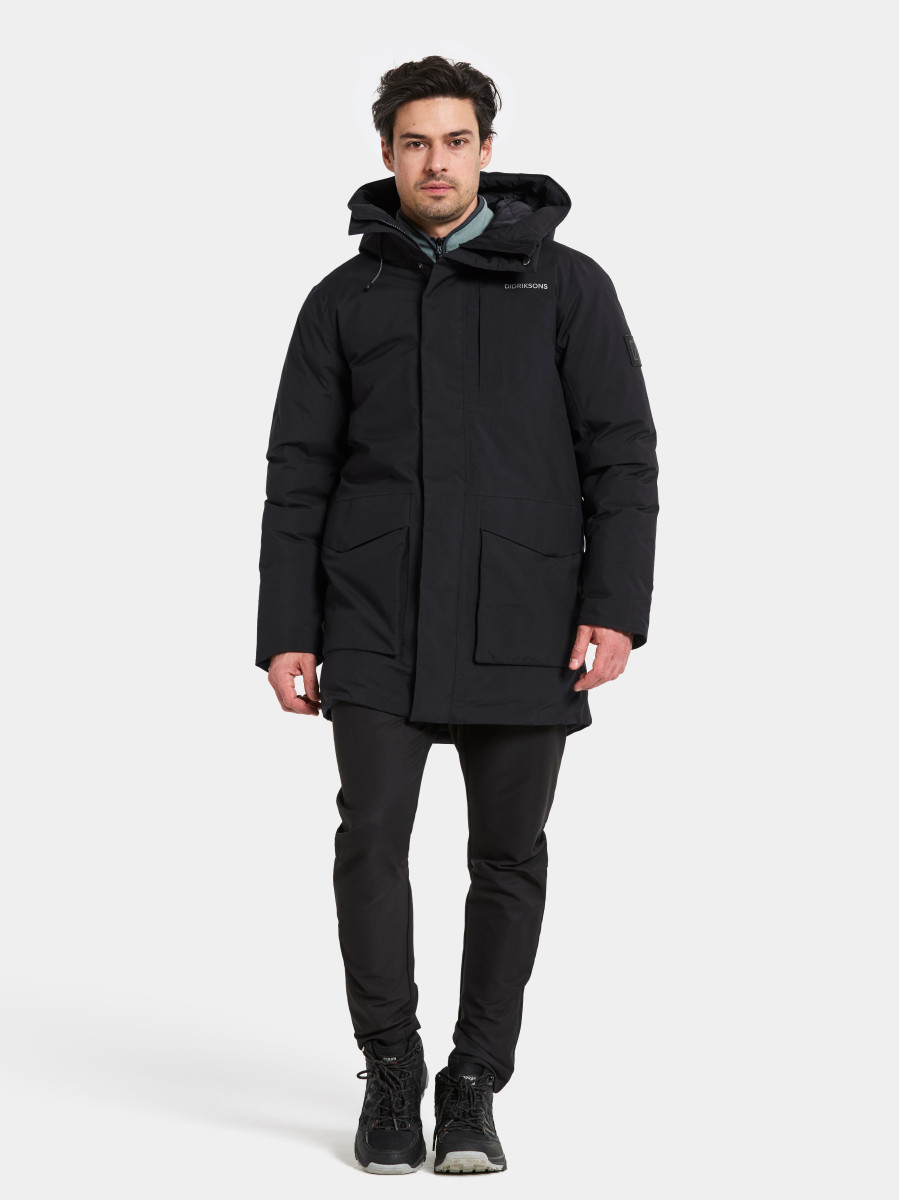 Die Jacke hat einen Zwei-Wege-Frontreißverschluss und eine Knopfleiste für zusätzlichen Schutz vor den Elementen. Die verstellbare Kapuze mit Kordelzug und elastische Innenbündchen sorgen für eine perfekte Passform. Der Parka ist mit mehreren praktischen Taschen ausgestattet, darunter eine Innentasche mit Reißverschluss und eine Brusttasche mit Reißverschluss. Reflektierende Details wie das Logo und Reißverschlussdetails erhöhen die Sichtbarkeit im Dunkeln.