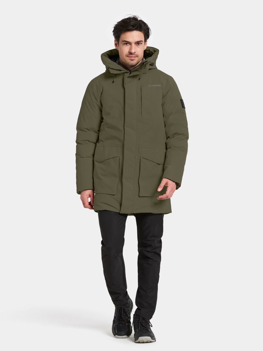 Die Jacke hat einen Zwei-Wege-Frontreißverschluss und eine Knopfleiste für zusätzlichen Schutz vor den Elementen. Die verstellbare Kapuze mit Kordelzug und elastische Innenbündchen sorgen für eine perfekte Passform. Der Parka ist mit mehreren praktischen Taschen ausgestattet, darunter eine Innentasche mit Reißverschluss und eine Brusttasche mit Reißverschluss. Reflektierende Details wie das Logo und Reißverschlussdetails erhöhen die Sichtbarkeit im Dunkeln.
