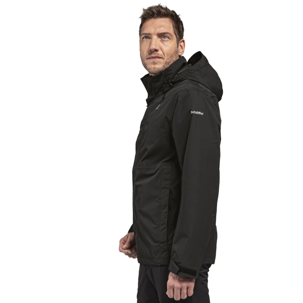Auf Wanderungen optimalen Wetterschutz erhalten in der Regenjacke von Schöffel. Sie bietet durch das VENTURI Ripstop Material mit einer Wassersäule von 10.000 mm Wasserdichte, ist winddicht und gleichzeitig strapazierfähig und atmungsaktiv. So brauchst Du Dir keine Gedanken um das Wetter machen, Regen und Wind können Dir nichts anhaben. Außerdem sorgt die Atmungsaktivität für ein angenehmes Körperklima, da warme Luft vom Körper schnell nach außen transportiert wird. Praktisch ist auch, dass die Kapuze der Wanderjacke im Kragen verstaut werden kann. Zum optimalen Verstauen von Kleinigkeiten verfügt die Schöffel Jacke über zwei Außentaschen mit Reißverschluss.