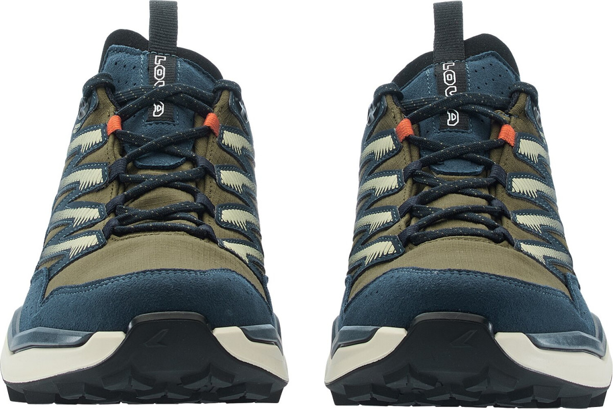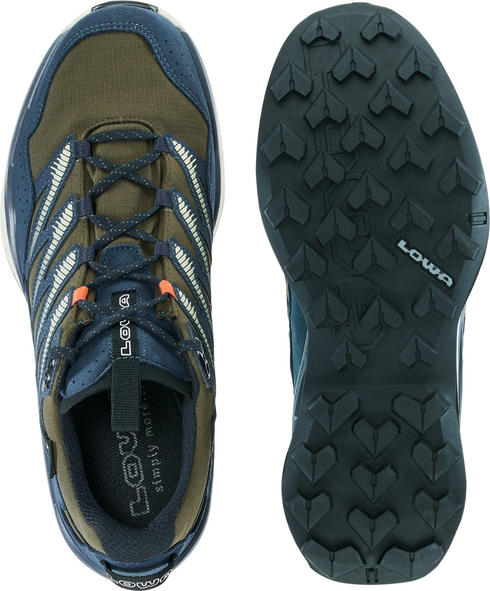 Für Abenteuerlustige und Adrenalinjunkies ist der MADDOX PRO GTX LO das Ticket zu unvergleichlicher Performance und Agilität. Egal ob steile Steigungen, dichte Wälder oder roughes Mittelgebirgsterrain - der Leichtwanderhalbschuh hält dynamisch Schritt. Seine Passform beeindruckt wie die einer zweiten Haut, die scharf profilierte LOWA® FAST HIKING-Sohle liefert hervorragenden Grip. Das bewährte Zwischensohlensystem aus LOWA® DYNAPU® als auch das leichte, atmungsaktive Ripstop-Obermaterial gewährleisten ein sportliches Maß an Flexibilität - sodass der MADDOX PRO GTX LO gediegenere Tempi als auch dynamische Fast-Hiking-Passagen problemlos meistert. Dank einer GORE-TEX Membran ist er darüber hinaus absolut wasserdicht. Das Naturell des Schuhs spiegelt sich auch in seinem optischen Auftritt wider: Mit dem scharfkantigen, präzisen Design ist der MADDOX PRO GTX LO ein wahrer Eyecatcher und setzt einen spannenden Akzent im Segment dynamischer Light-Hiking-Halbschuhe.