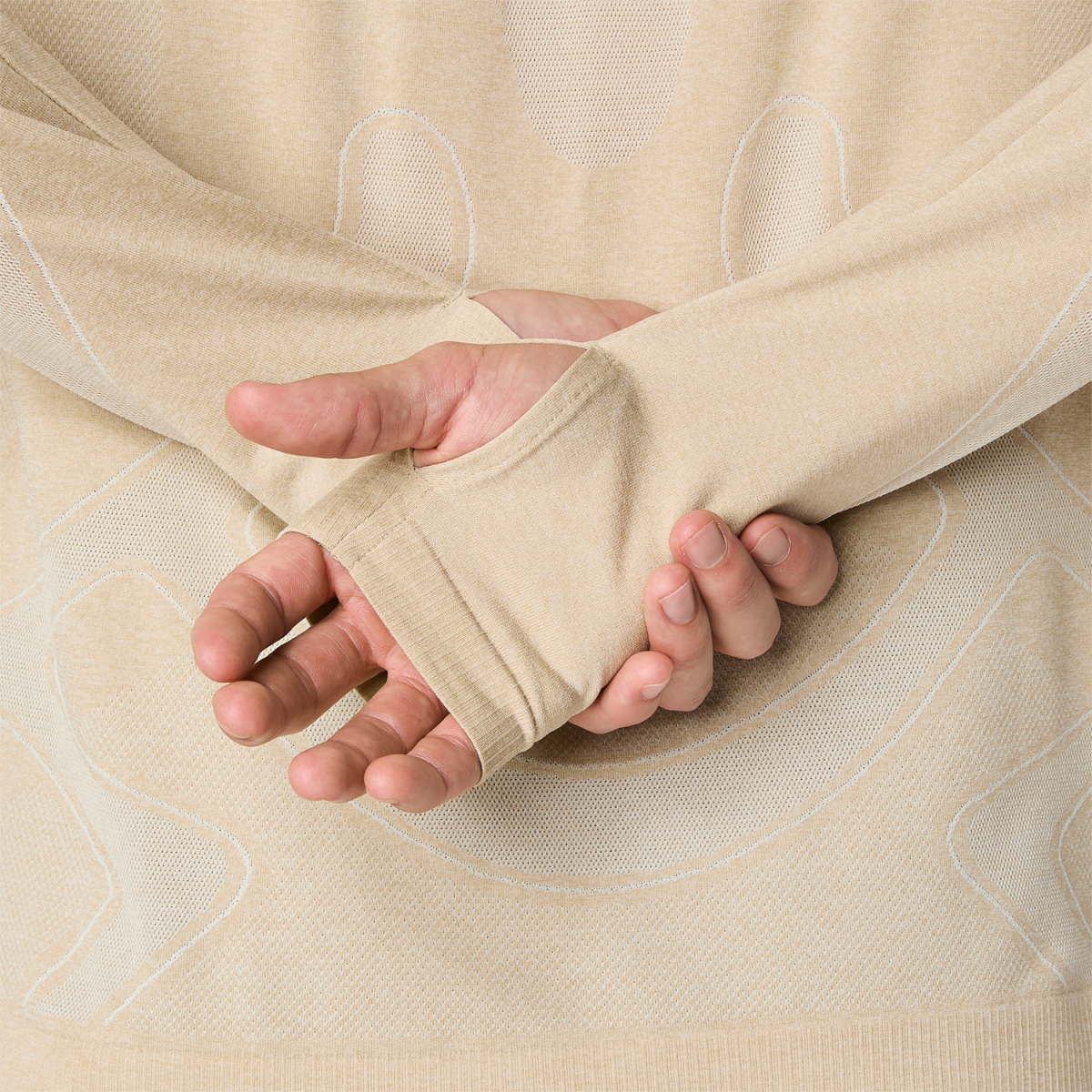 Dieses Produkt besteht aus einer nahtlosen Strickkonstruktion, die Reibung verhindert, damit du dich wohlfühlen und konzentrieren kannst.