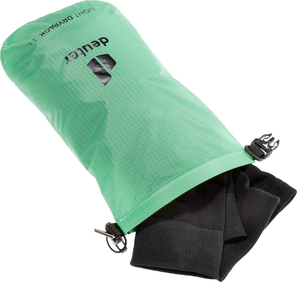 Rollverschluss: Vor dem Schließen der Schnalle: mindestens drei Mal einrollen, damit der Inhalt trocken bleibt | Vorsicht: nicht für Situationen geeignet, in denen der Drypack unter Wasser getaucht wird | Material mit 10.000 mm Wassersäule schützt vor Staub oder Starkregen | D-Ring zur Befestigung | Versiegelte Nähte | Effizientes Packen dank rechteckiger Bodenform