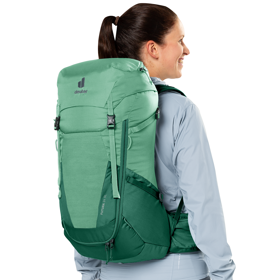 Der Futura SL ist aufgrund des kürzeren Rückens, der schmäleren Schulterträger und der konisch geformten Hüftflossen speziell auf die weibliche Anatomie abgestimmt und sorgt damit für erhöhten Tragekomfort auf längeren Tages- und Mehrtageswanderungen. Zudem bietet das neue Mesh des Aircomfort Rückensystem maximale Belüftung und verringert das Schwitzen damit um bis zu 25 %. Zudem verschafft die große Frontöffnung einen leichten Zugriff auf und einen guten Überblick über den Inhalt des Rucksacks. Das Hauptmaterial der Futura-Serie besteht aus bluesign(R)-zertifiziertem Material.
